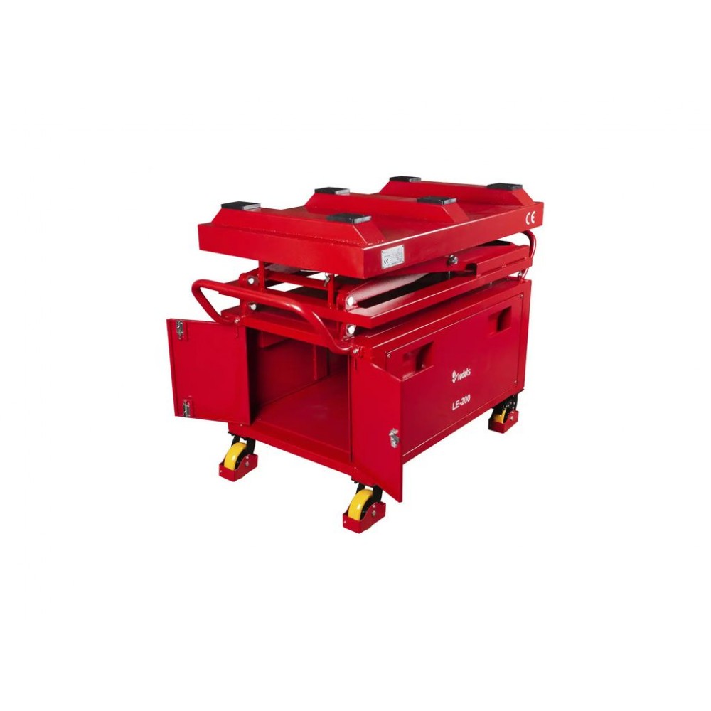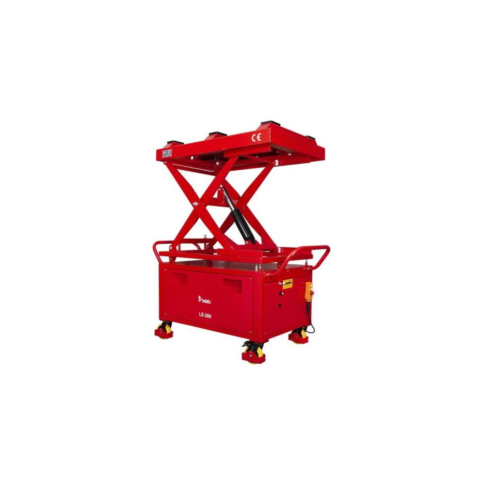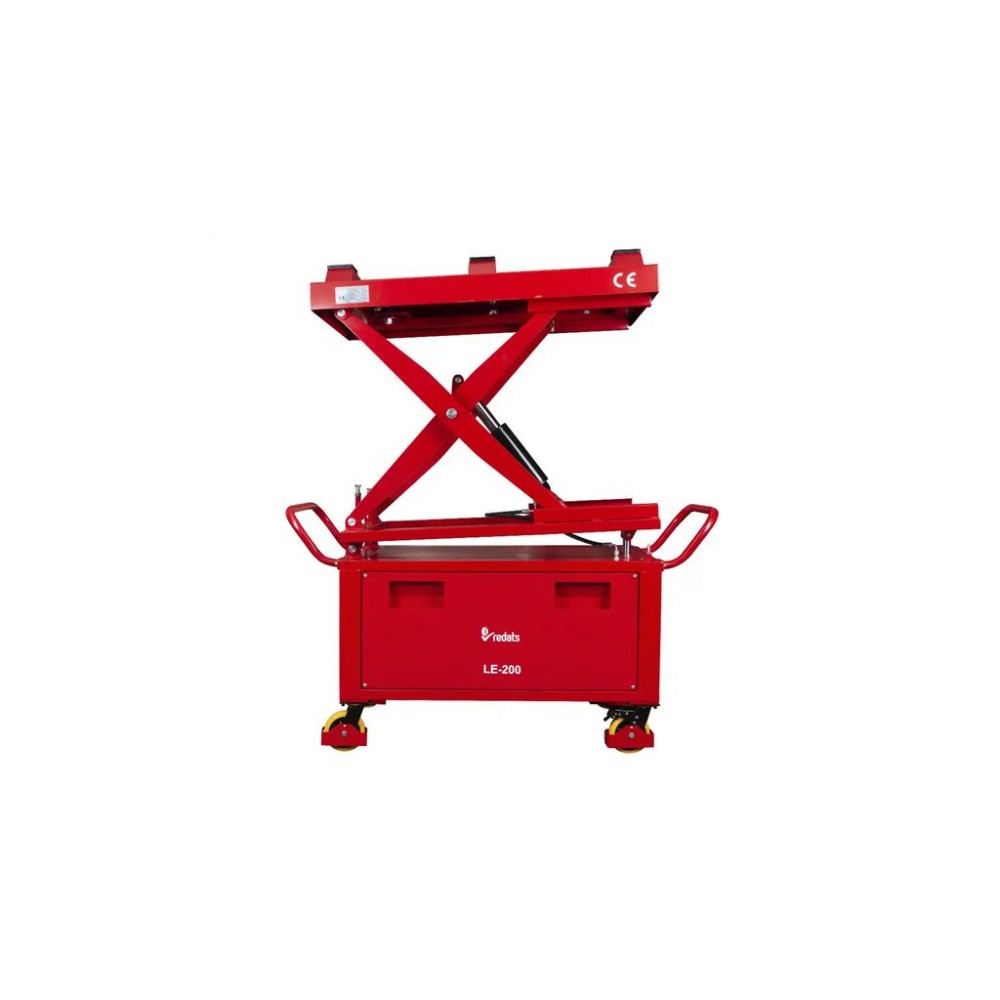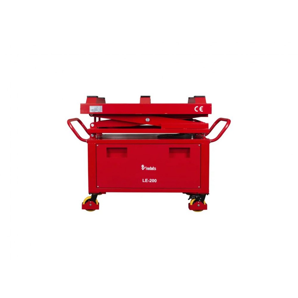 Підйомник ножичний REDATS LE-200 - це ефективне обладнання для автосервісів і шиномонтажів, призначене для підйому двигунів, коробок передач, акумуляторів електромобілів та інших елементів авто для їх ремонту та обслуговування. 2 електроприводи потужністю 1,1 кВт (один для підйому, інший - для зміни кута нахилу) і 2 гідравлічні циліндри забезпечують плавні та контрольовані підйом і опускання всього за 15 секунд. Вантажопідйомність пристрою становить 1 тонну, максимальна висота підйому - 1800 мм. Початкова висота платформи - 1130 мм.