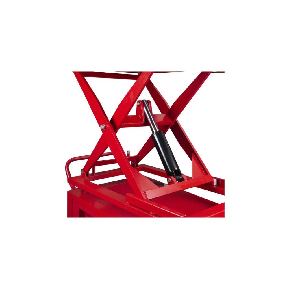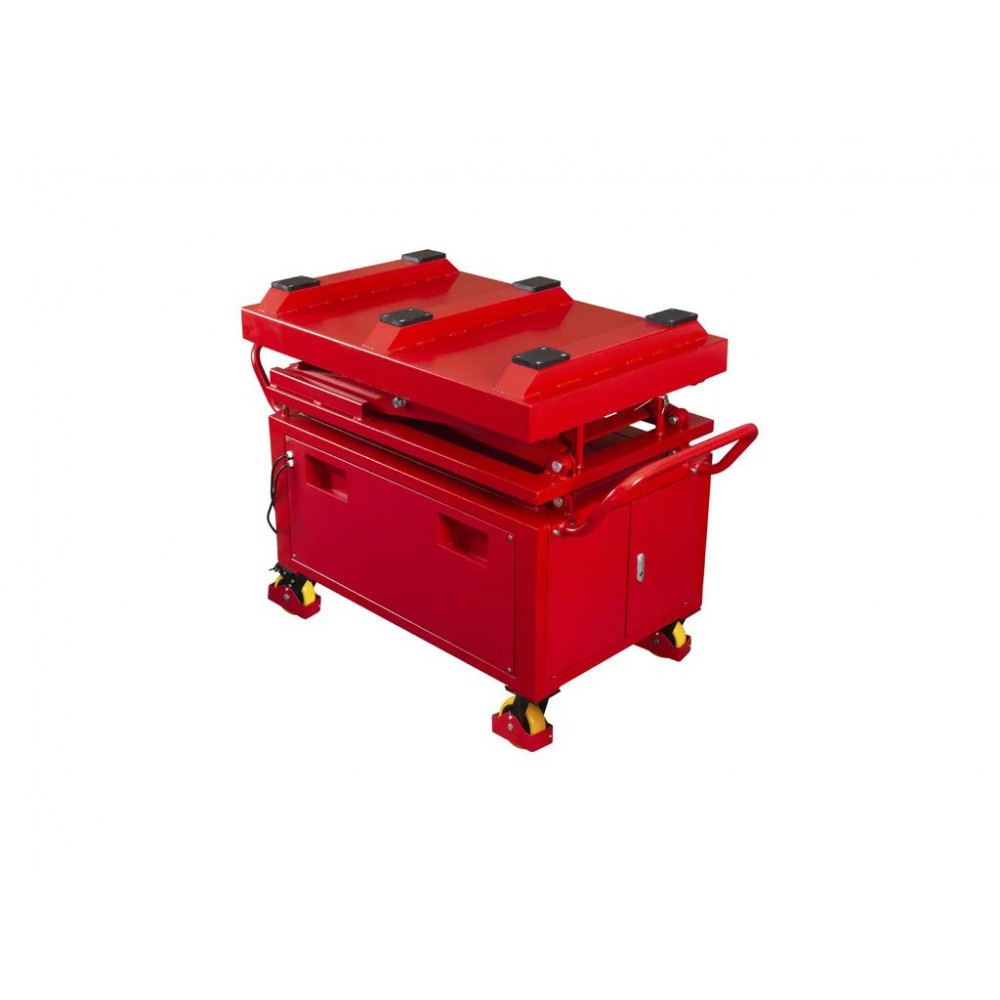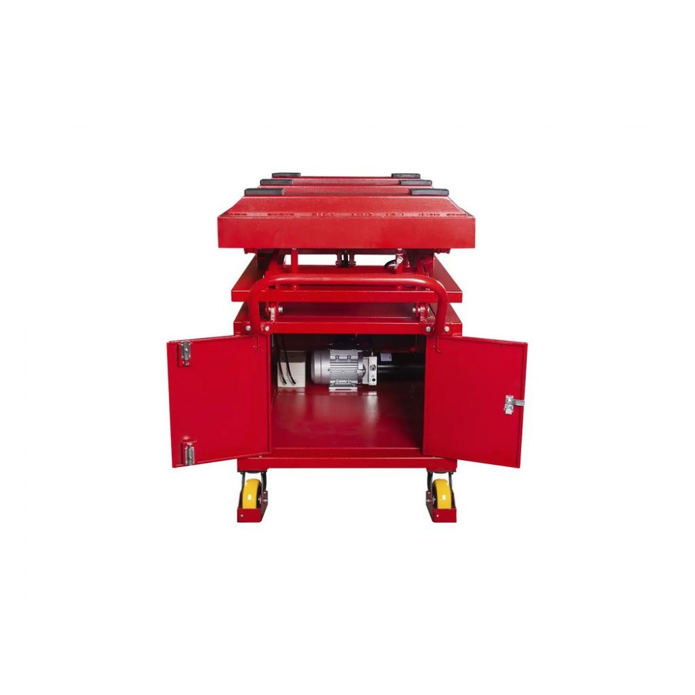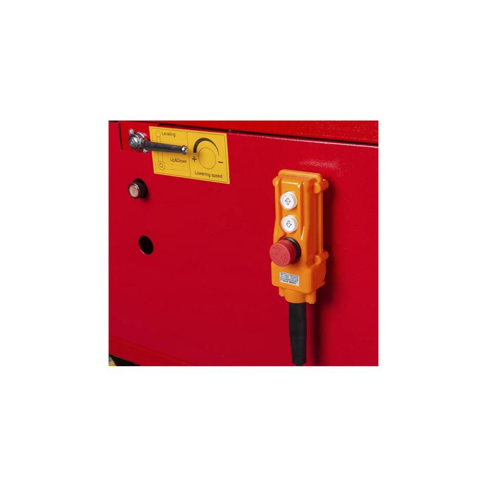 Перевагою моделі є великі транспортні колеса та зручні ручки для переміщення, завдяки яким можна встановити підйомник у будь-якому зручному місці. Підйомник оснащений запобіжним пристроєм, який відкривається при опусканні, та кінцевим вимикачем для обмеження максимального положення. Цей підйомник на автосервіс може управлятися за допомогою пульта дистанційного керування, який входить у комплект поставки.