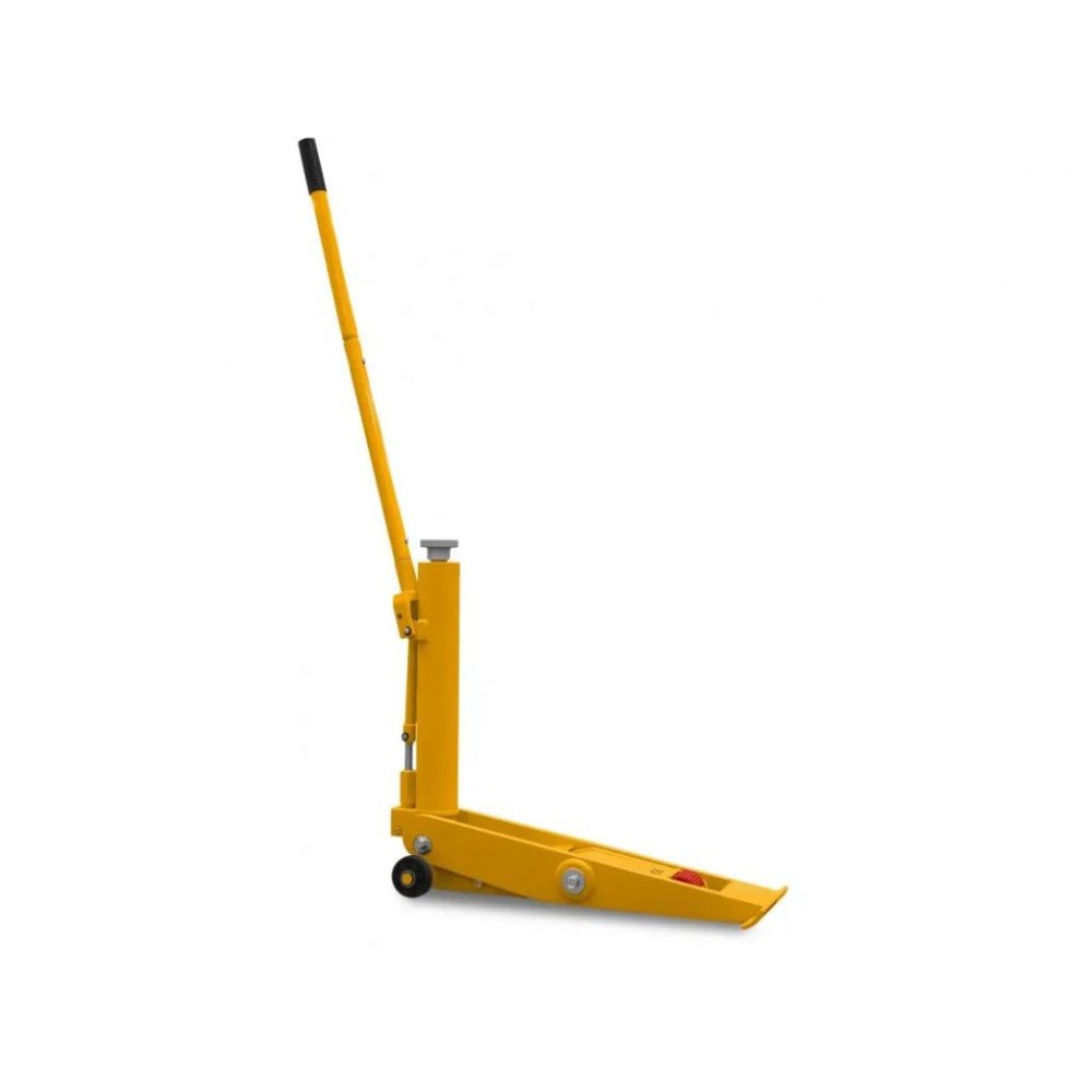 Високоточний гідравлічний привід забезпечує плавний, контрольований підйом і стабільний спуск. Висота підйому - 65-420 мм. Для управління підйомом і спуском використовується довгий, ергономічний важіль з гумовим покриттям в точці захвату. Експлуатація домкрата проста та інтуїтивно зрозуміла. Конструкція пристрою виготовлена з надзвичайно міцних матеріалів, що гарантує надійність і тривалий термін служби. Висока стійкість створює максимальну безпеку при підйомі, а механізм блокування запобігає випадковому спуску вантажу. Домкрат оснащений міцними транспортними колесами для зручного переміщення по робочих приміщеннях. Такий підкатний гідравлічний домкрат відмінно підійде для транспортування важкого обладнання на складах і заводах, для авторемонтних майстерень та інших ситуацій, що вимагають точного і безпечного підйому важкої техніки.