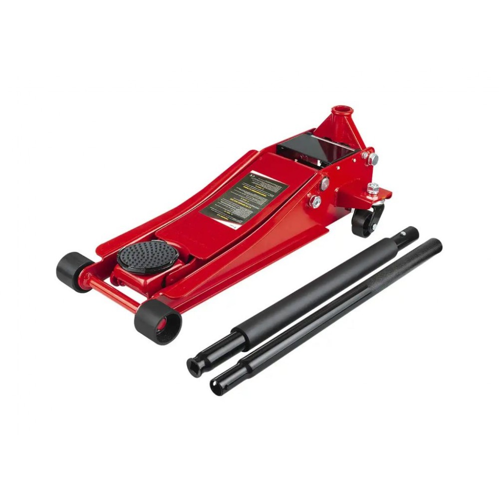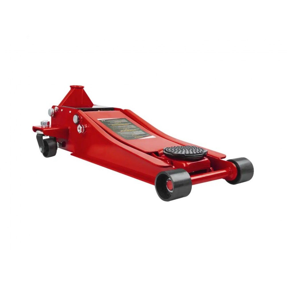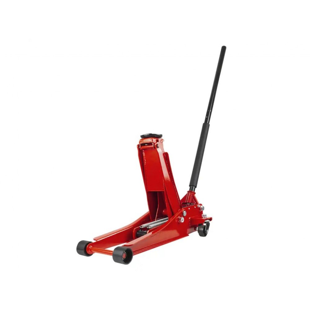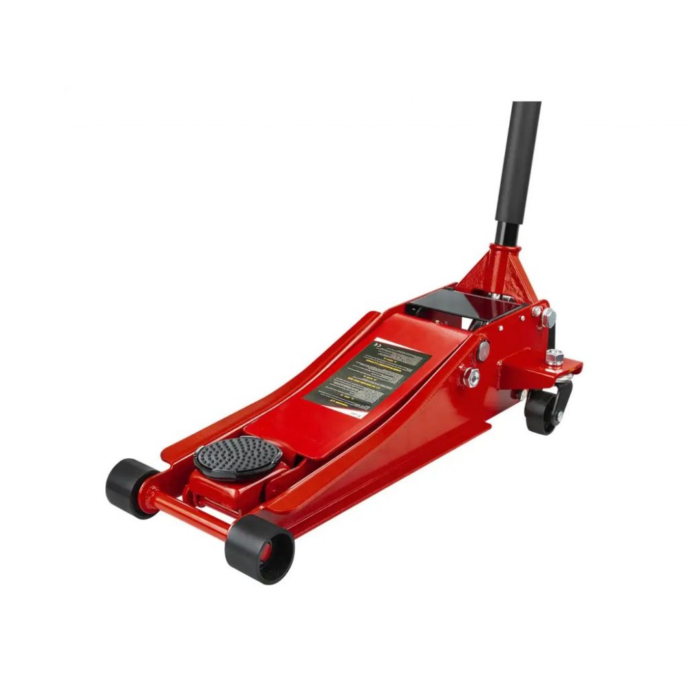Завдяки подвійному насосу підйом і опускання виконуються надзвичайно швидко. Вбудований запобіжний клапан захищає домкрат від перенавантаження. Поворотне на 360° сідло, поворотні металеві ролики та зручна ручка довжиною 100 см дозволяють легко позиціонувати підйомник під автомобілем. Конструкція виконана з міцної сталі і має високу надійність і зносостійкість. Завдяки своїй універсальності, цей низькопрофільний домкрат стане вигідним придбанням для роботи з автомобілями.