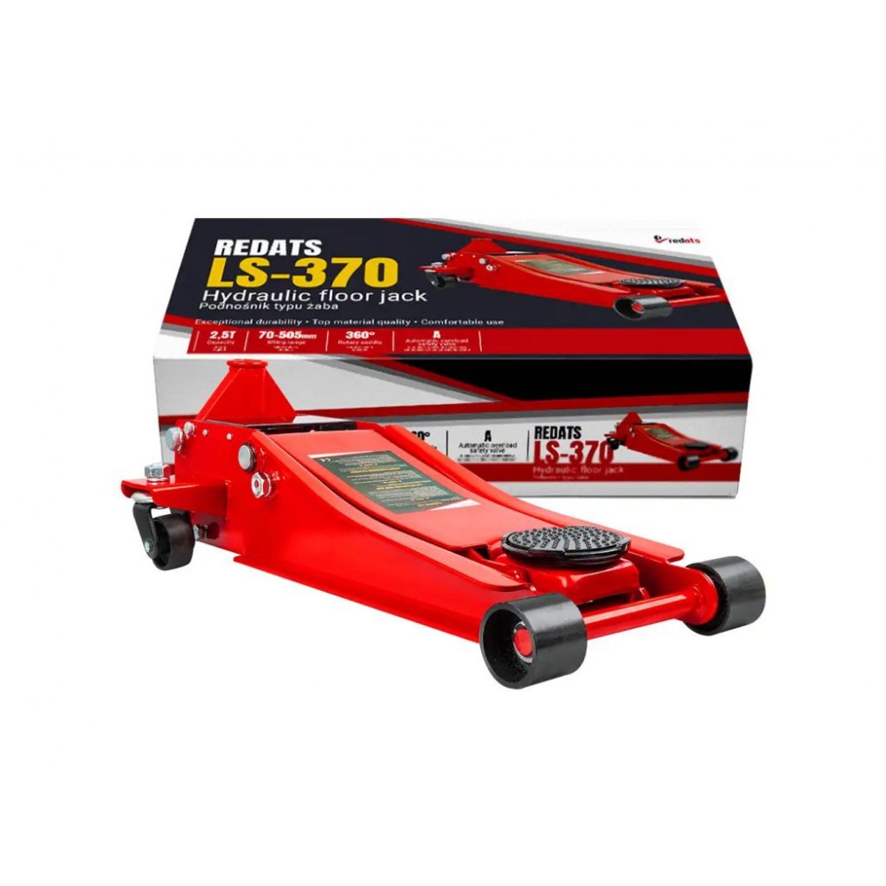 Підкатний гідравлічний домкрат низькопрофільний (7-50,5 см) 2,5 т REDATS LS-370 - це відмінне обладнання для СТО та власного гаража, яке забезпечує зручну та безпечну роботу практично з усіма моделями легкових автомобілів. Діапазон підйому 70-505 мм дозволяє використовувати його для авто з низьким кліренсом і зручно виконувати будь-які роботи під автомобілем. Вантажопідйомність становить 2,5 тонни.