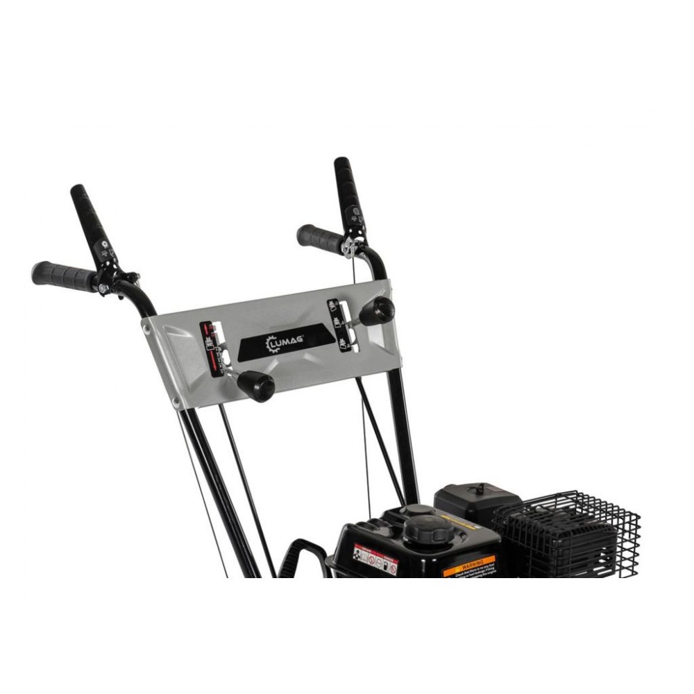 Lumag KM 800 це бензинова підмітальна машина для прибирання великих площ. З її допомогою прибирають не лише сміттєві частки, але і зчищають свіжий сніговий покрив.