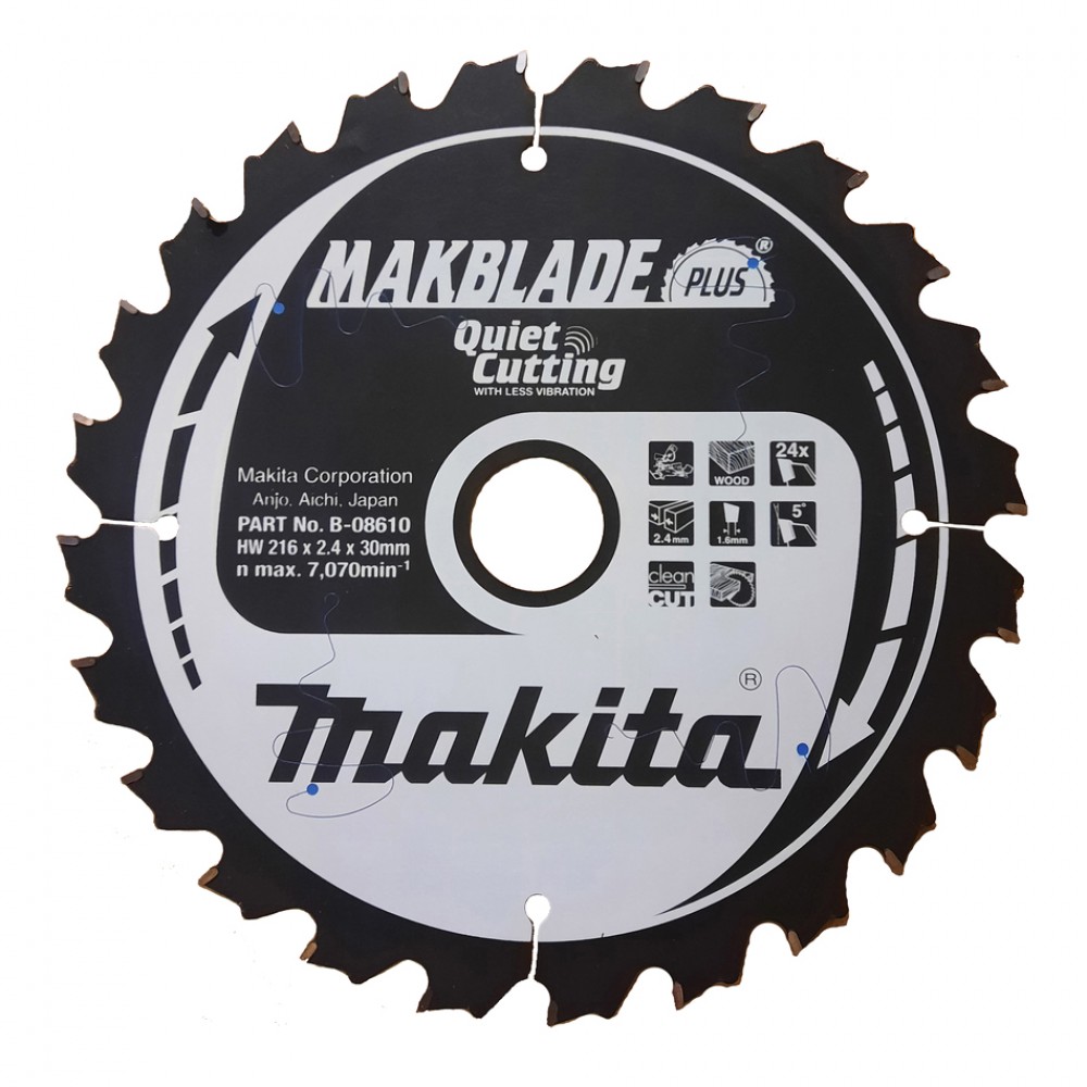Опис Пиляльний диск Makita MAKBlade Plus по дереву 216x30мм x 24 зуб, B-08610