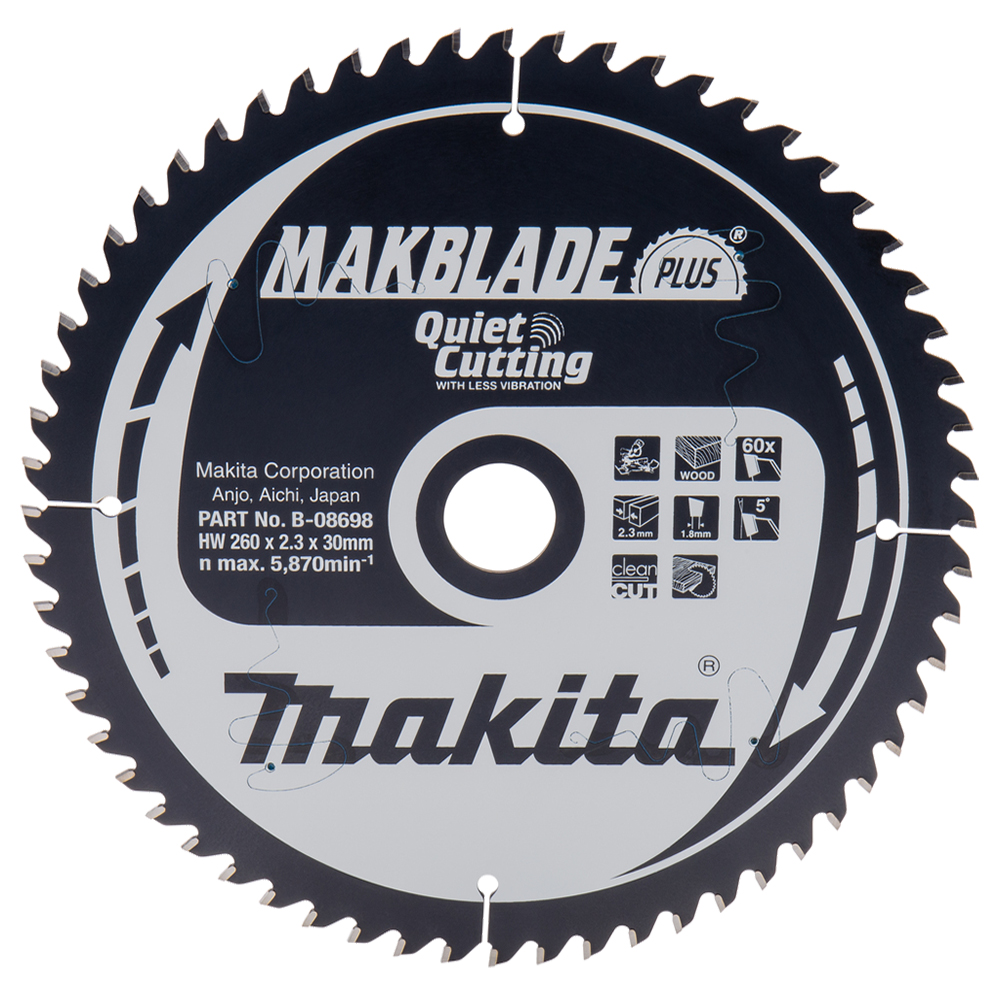 Опис Пиляльний диск Makita MAKBlade Plus по дереву 260x30мм x 60 зуб, B-08698