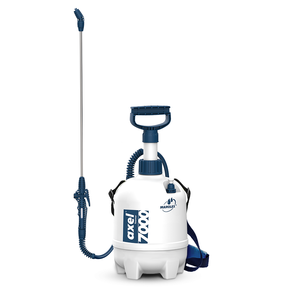 Пена, создаваемая пеногенератором axel, плотная и долго держиться даже на вертикальных поверхностях.