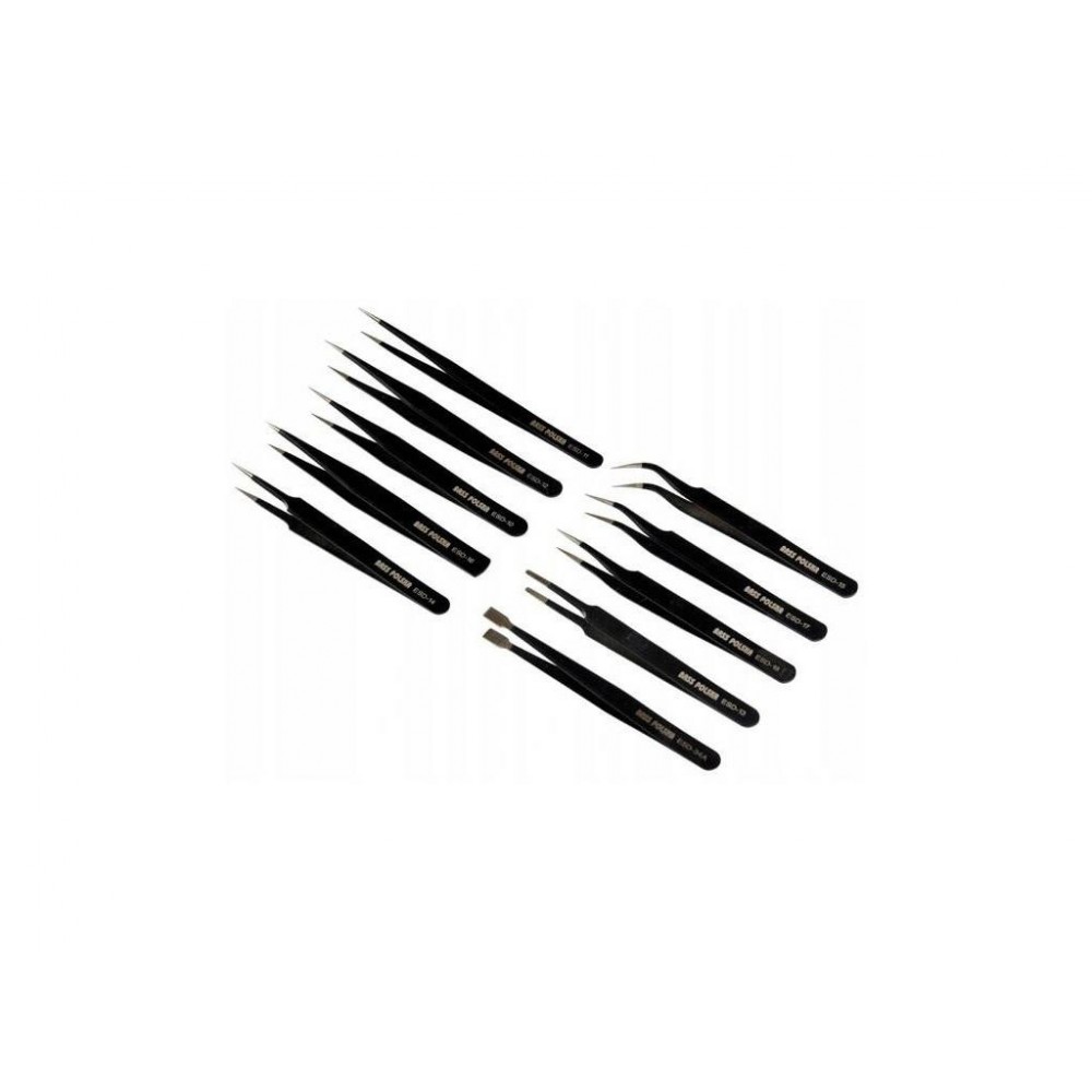 Пінцети для дрібної механіки Bass Polska BP-3691 стане незамінним вашим помічником, надаючи широкий спектр для різноманітних завдань. Набір включає в себе 10 різних типів пінцетів ESD, кожен з яких має свої особливості та призначення.