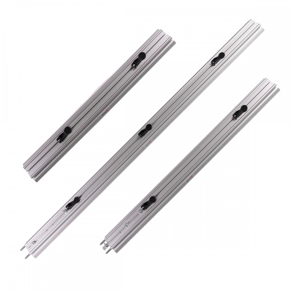 В комплект входить три шини довжиною 150 см, 100 см і 80 см, які можна комбінуючи з’єднувати між собою, що дозволяє вести розкрій керамограніту різного формату. Також входить каретка а також ламач плитки. Весь комплект укладається в зручний чохол для транспортування.