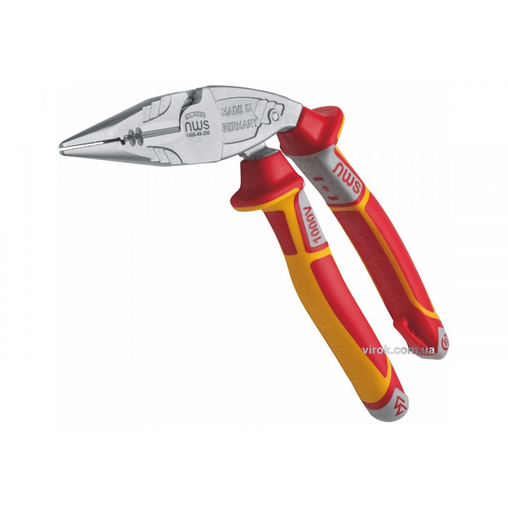 Плоскогубці комбіновані NWS "Ergo Multi" вигнуті 45° з ізольованими ручками VDE до 1000 В 200 мм