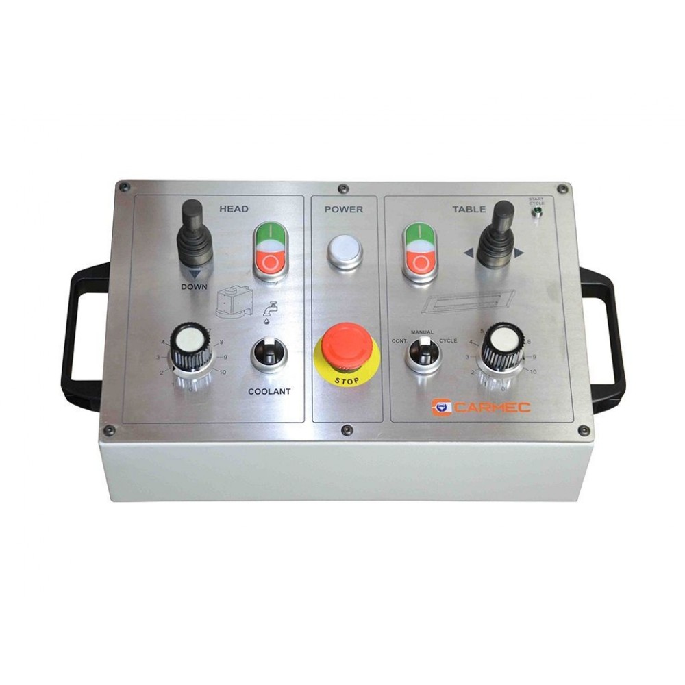 - Зручні для користувача органи управління розташовані на панелі управління, встановленої на поворотному важелі, і включають швидку подачу робочої голови і столу.