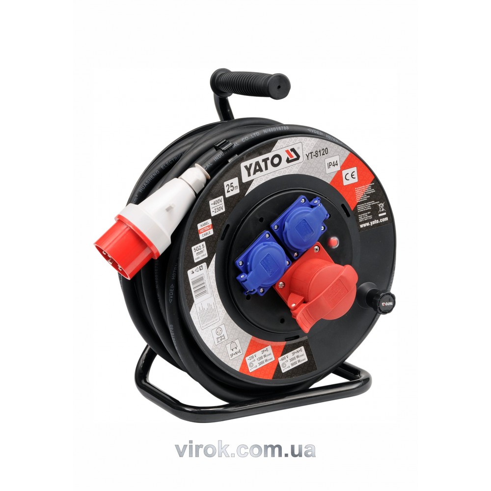 Подовжувач електричний на котушці YATO 25 м 2.5 мм² 4 гнізда 5-жильний