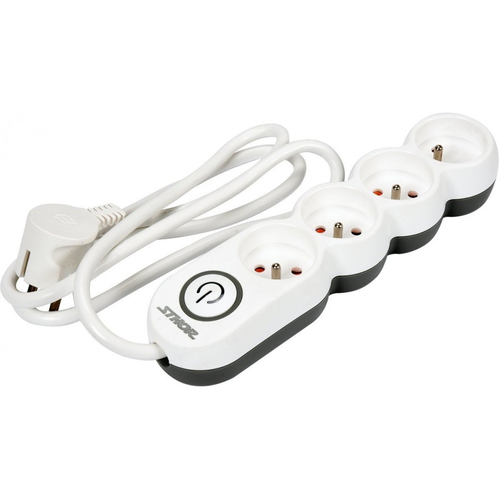 Подовжувач мережевий STHOR: l= 1,5 м, колодка з 4 гніздами і вмик, 3-жильний Ø=1,5 мм², з заземл
