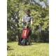 - Пристрій оснащений двома великими колесами, які полегшують рух по ділянці. Це зменшує фізичне навантаження під час транспортування подрібнювача.
