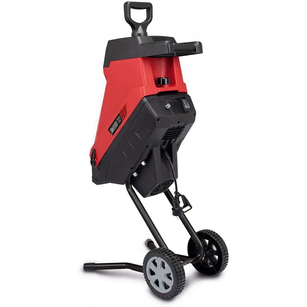 - Цей подрібнювач обладнаний двигуном потужністю 2400 Вт, що забезпечує високу продуктивність та здатність швидко подрібнювати гілки та зелені відходи.