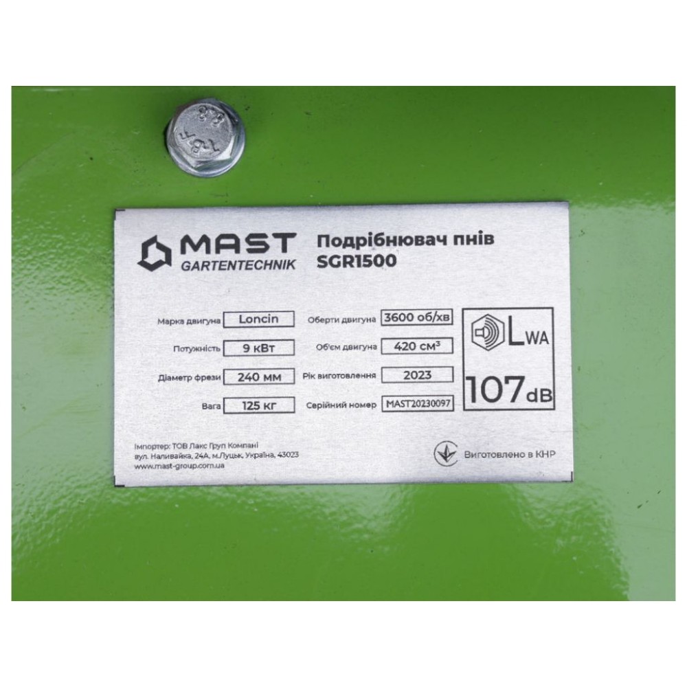 Подрібнювач пнів MAST Gartentechnik SGR1500 - це надійний та потужний інструмент, який стане невід'ємною частиною вашого арсеналу для боротьби із пнями у вашому саді чи городі.