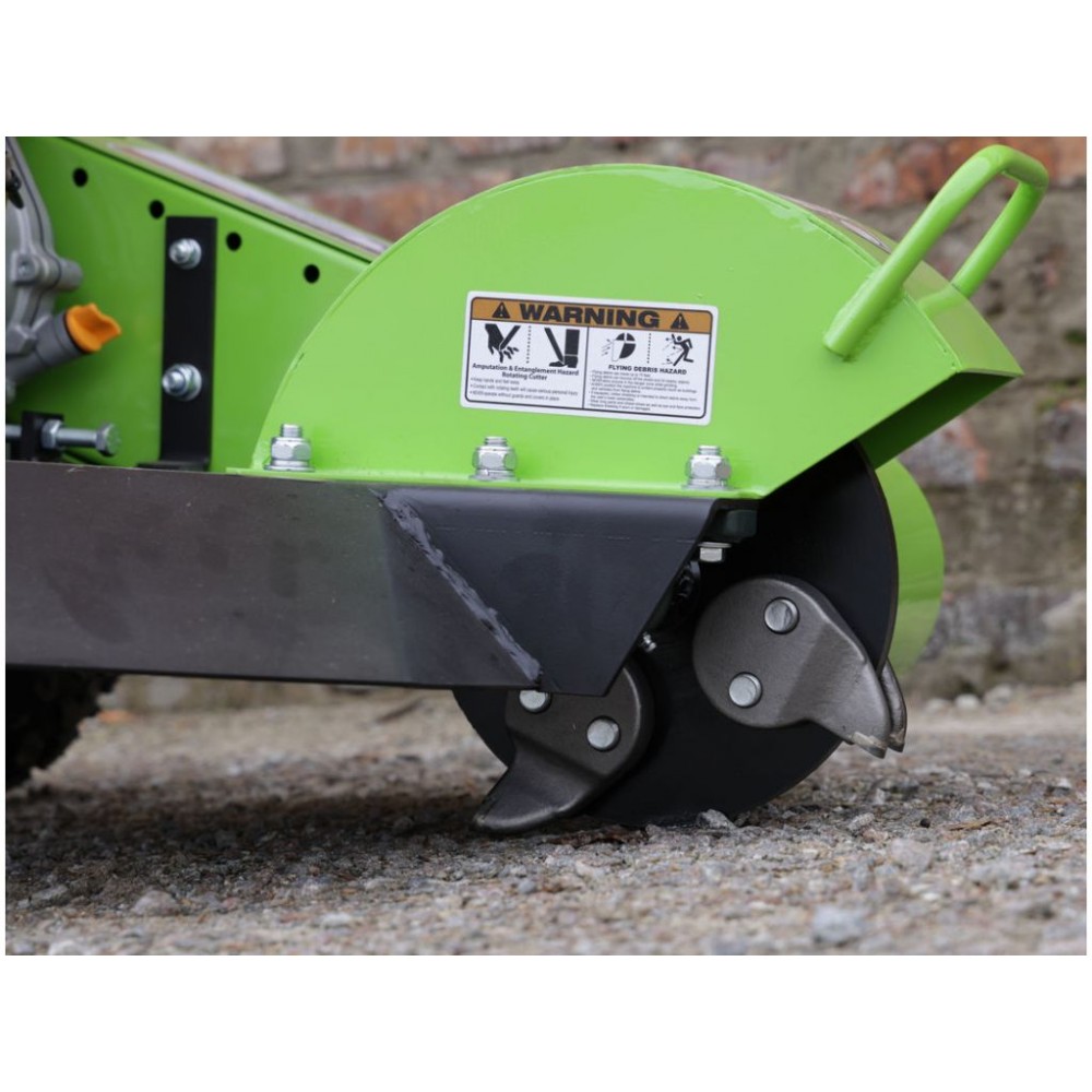 З цим механізмом можна видалити надземну і частину підземної частини кореня без пошкодження навколишнього грунту. Головний робочий механізм подрібнювача це високоміцний металевий ріжучий диск з 8-а вольфрамовими зубами.