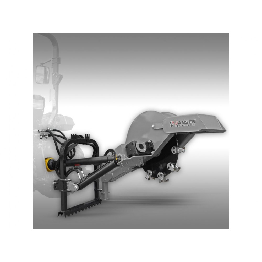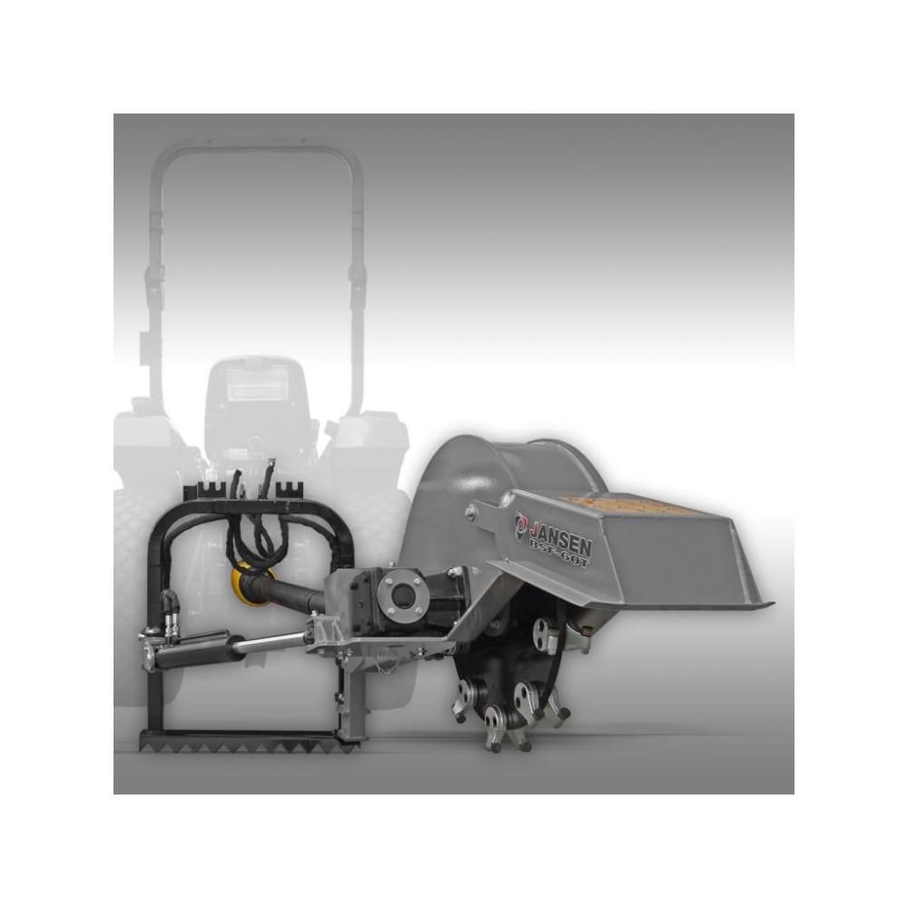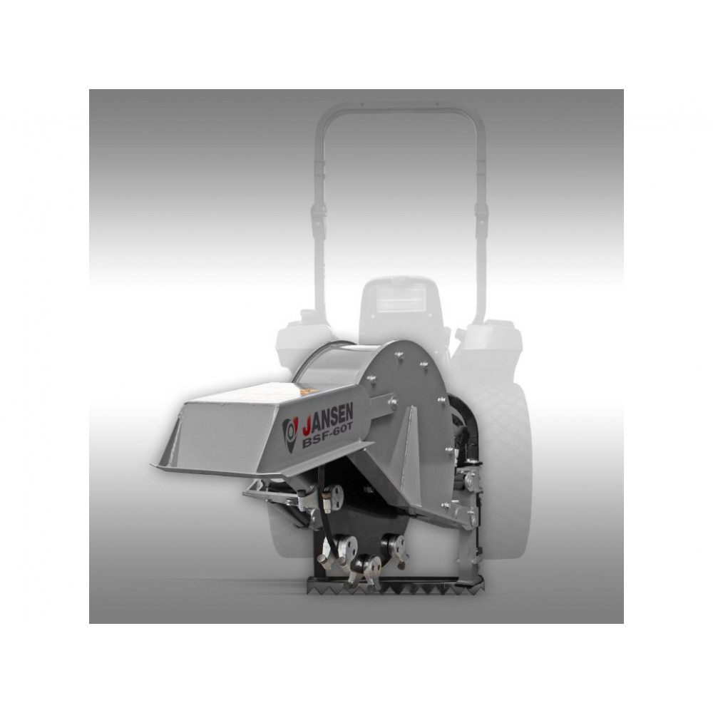Подрібнювач пнів на трактор Jansen BSF-60T працює від валу відбору потужності трактора, приєднуючись за допомогою заднього 3-точкового навісу (сумісність з категоріями I і II). Необхідна потужність трактора - 30-60 к.с.