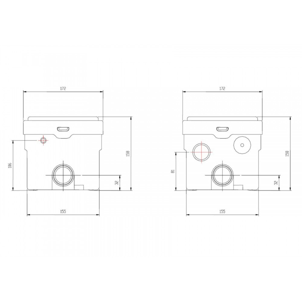 - Можливість підключення умивальника, ванни, душу або біде з обох сторін насоса