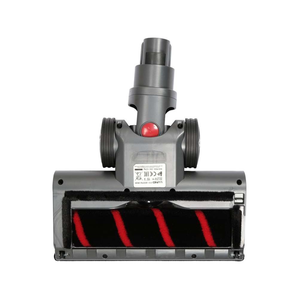 - Широка турбощітка (електрична щітка) для пилососу всіх типів підлог. Оснащений гумовими колесами, світлодіодною лампою, щетиною навколо валика та м’яким знімним валиком із щетиною, навколо якого не заплутається шерсть і шерсть домашніх тварин. (інші типи роликів, наявні на ринку, менш ефективні та більш проблематичні). Ідеальна маневреність також дозволить пропилососити під диваном. Наконечник призначений для прибирання дрібного та середнього бруду. Вихровий рух щітки приводиться в дію додатковим двигуном (15 Вт), який максимізує швидкість обертання
