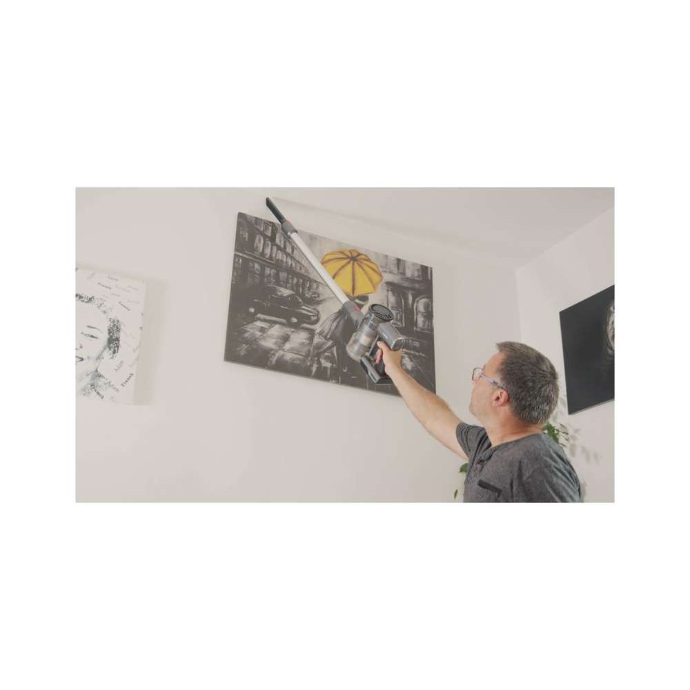 Бездротовий вертикальний пилосос останнього покоління з безщітковим двигуном і циклонною системою забезпечує ретельне пилососіння різних типів поверхонь і місць. Він гарантує потужність всмоктування 20 кПа, що можна порівняти з дротовими пилососами високого класу. Оснащений висококласним фільтром HEPA H13, він забезпечує ефективну фільтрацію повітря та зменшення забруднення. Потужний і ефективний акумулятор забезпечить до 30 хвилин роботи в режимі ECO або до 12 хвилин в режимі MAX. Великою перевагою пристрою є багатий набір аксесуарів, включаючи швабру з мікрофібри , яка дозволяє мити і пилососити підлогу одночасно.