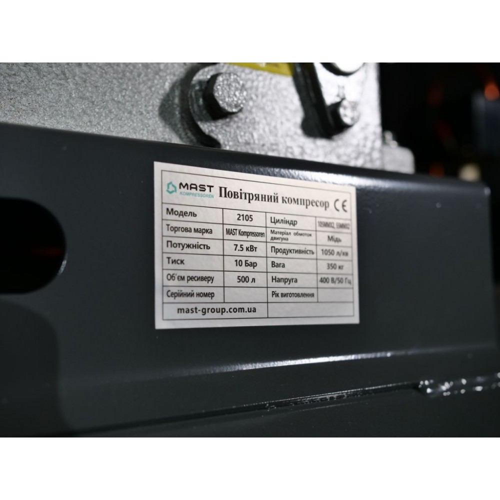 Обслуговувати компресор MAST 2105/500L 400V повинен досвідчений спеціаліст. Ознайомтеся з наданими виробником рекомендаціями.