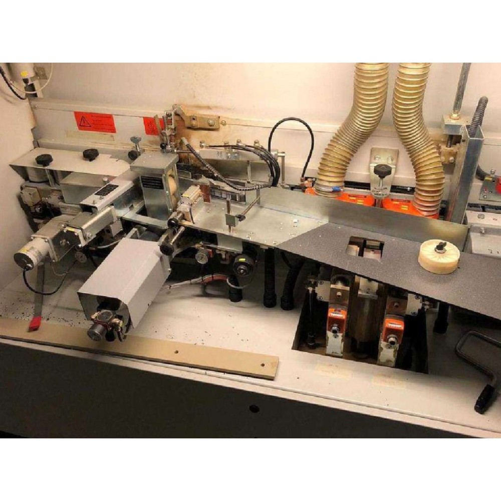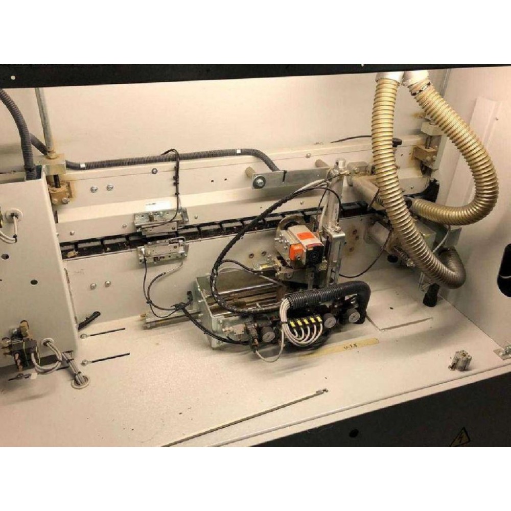прифугування, картриджне клеєнанесення, попередня гільйотина, притискні ролики, чистове торцювання звисів по довжині, чистове фрезерування звисів зверху-знизу (позиціонування здійснюється з пульта управління). радіусне циклювання (позиціювання здійснюється з пульта управління), обкатка кутів (активується з панелі управління), плоска цикля (активується з панелі управління)