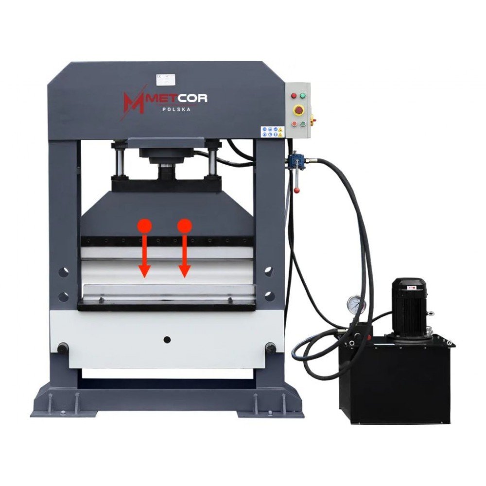 Metcor HPP-1010 — гідравлічний прес із зусиллям тиску 100 тонн, розроблений для забезпечення максимальної ефективності та точності згинання листового металу та інших виробів із металу під будь-яким кутом.