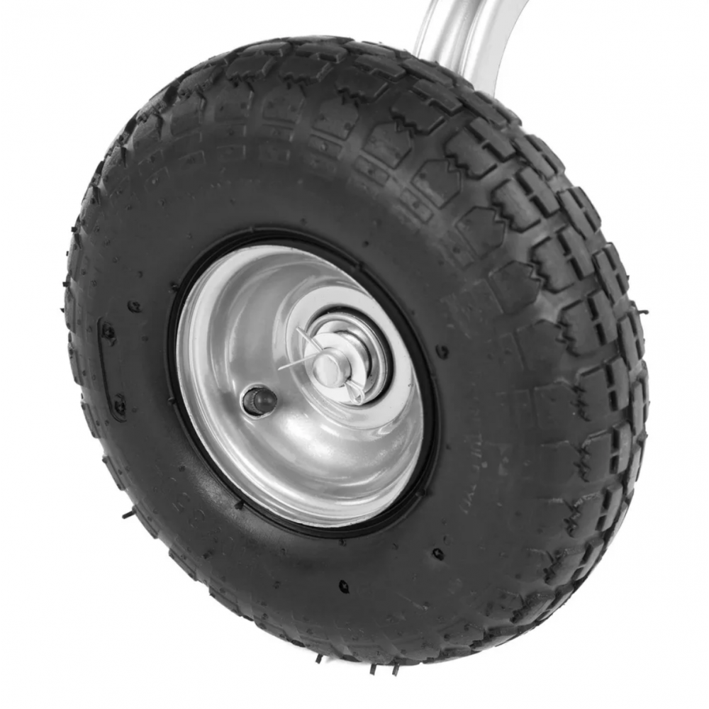 Пневматичні шини діаметром 25 см і міцні сталеві подвійні осі.
