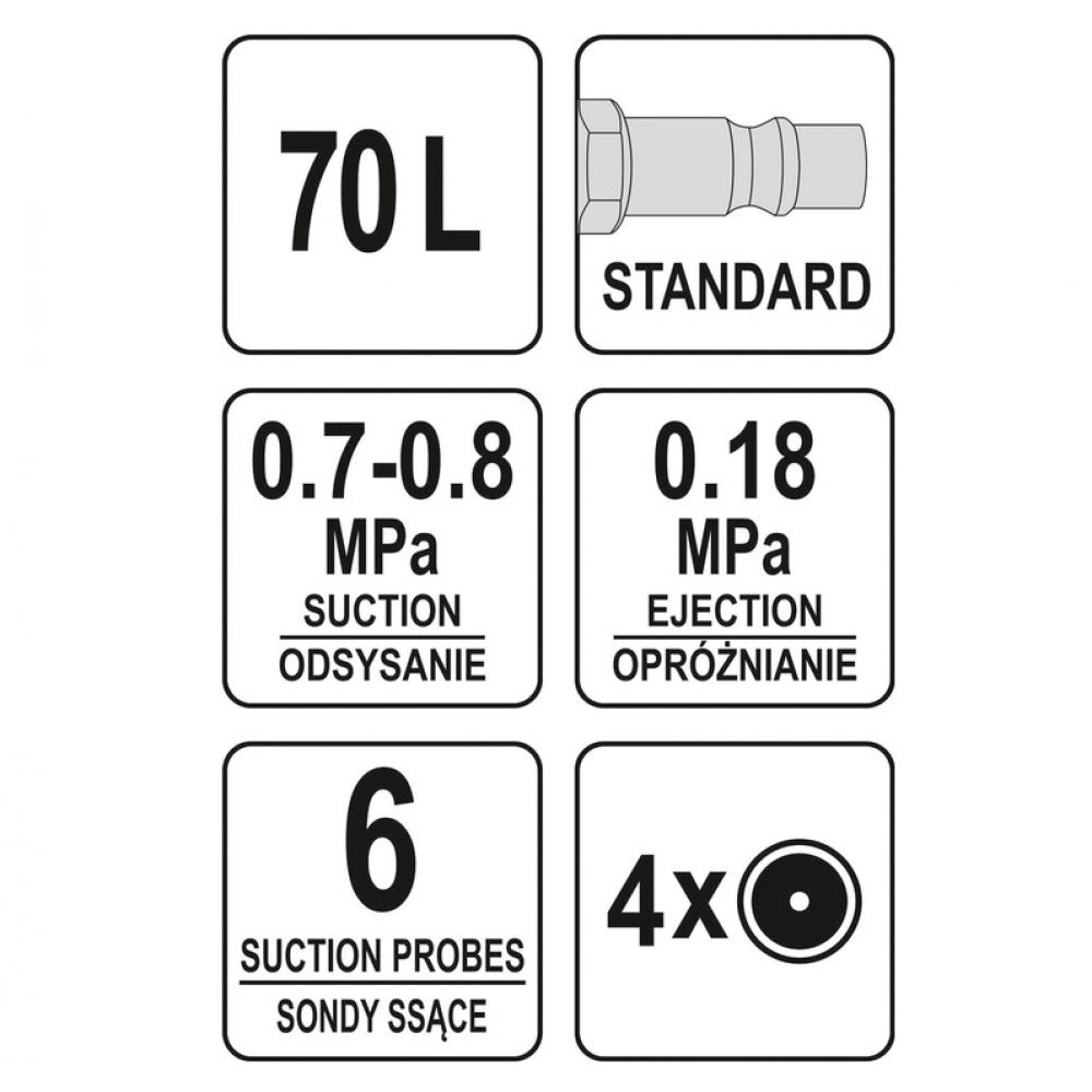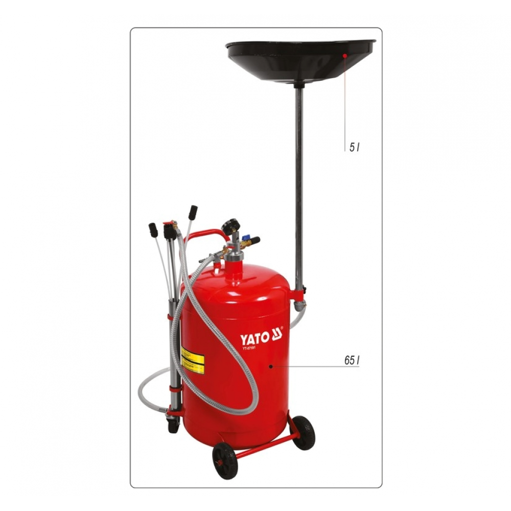 Пристрій для зливу оливи пневматичний на колесах YATO; V= 65 л, 6 зондів