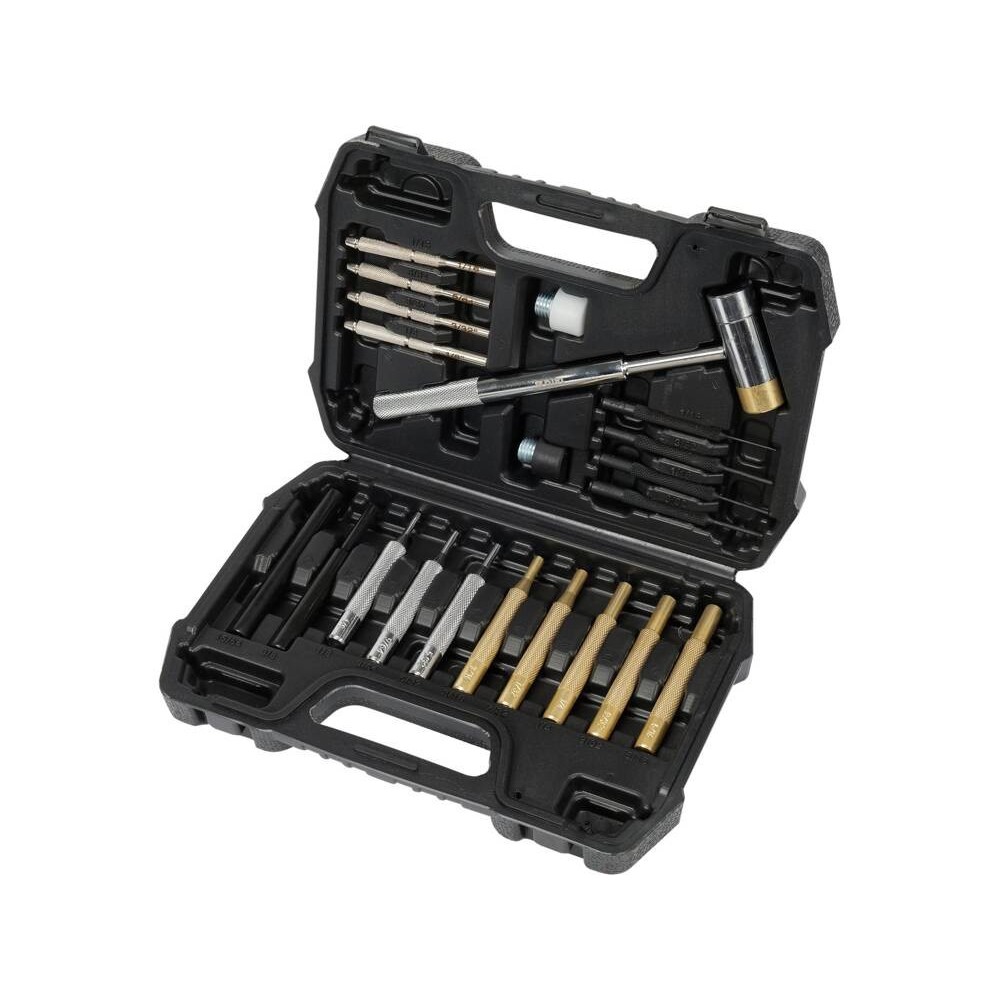Набір пуансонів для цехів точної механіки, годинникової та ювелірної майстерень. Збивачка зі змінними наконечниками, що закручуються - сталь, латунь, нейлон, гума. Набір упакований в пластиковий футляр.