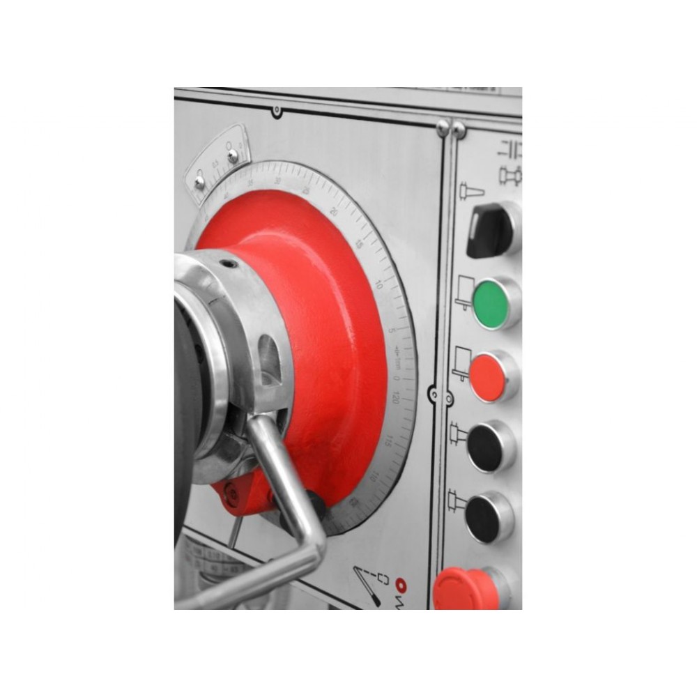 Верстат обладнаний системами безпеки відповідно до європейських норм. Кнопка аварійного вимкнення з самоблокуванням, для зупинки верстату при небезпечних ситуаціях. Відкидна кришка шпинделю яка захищає оператора, при піднятій кришці верстат не запуститься. На робочому столі є Т-подібні пази що допомагають зафіксувати деталь або дозволяють встановити додаткові фіксуючі елементи, такі як лещата.