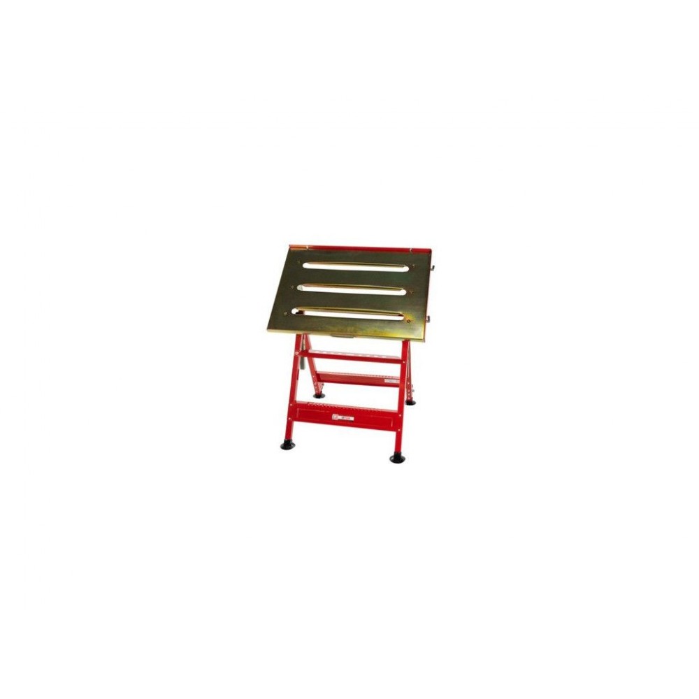 Робоча поверхня виготовлена з оцинкованої сталі товщиною 2,2 мм і має розмір 750х500 мм, що дозволяє зручно розмістити інструмент і заготовку. Висота столу регулюється на 4 рівні, завдяки чому можна налаштувати оптимальне положення. Стільниця має можливість нахилу під кутом до 45°. Конструкція міцна та стійка, для покращення стабільності ніжки доповнені гумовими накладками. Для зручності переміщення стіл має 2 маленьких колеса. Сертифікат СЄ підтверджує відповідність моделі європейським стандартам якості та безпеки. Цей стіл для зварювання купити за вигідною ціною можна на KMA.UA.