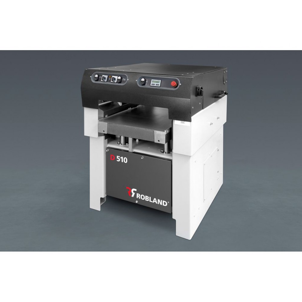 Рейсмусовий верстат Robland D 510 призначений для стругання заготовок в розмір по товщині. Дана модель оснащена ступінчастою регулюванням швидкості подачі 6 і 12 м/хв, механічним лічильником на ручці - моховике підйому/опускання основного столу. Масивний чавунний стіл 1050 х 510 мм – найбільший у своєму класі, серед моделей, представлених на російському ринку. Він може бути оснащений антифрикційними роликами в столі і спіральним ножовим валом. У комплектації Comfort pack верстат оснащується електричним підніманням/опусканням стола з електронним дисплеєм, також верстат має 4 швидкості подачі (5/8/10/16). Верстат широко застосовується в меблевому виробництві, вагонобудуванні, будівництві, суднобудуванні.