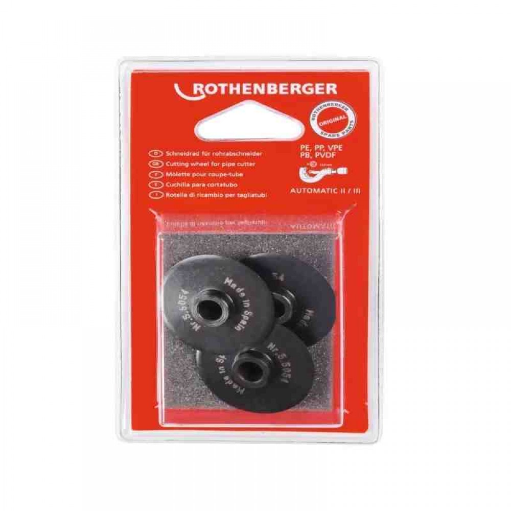 ✔ Оригінальні різальні колеса ROTHENBERGER із високолегованої, загартованої сталі гарантують точний розріз труби під прямим кутом.