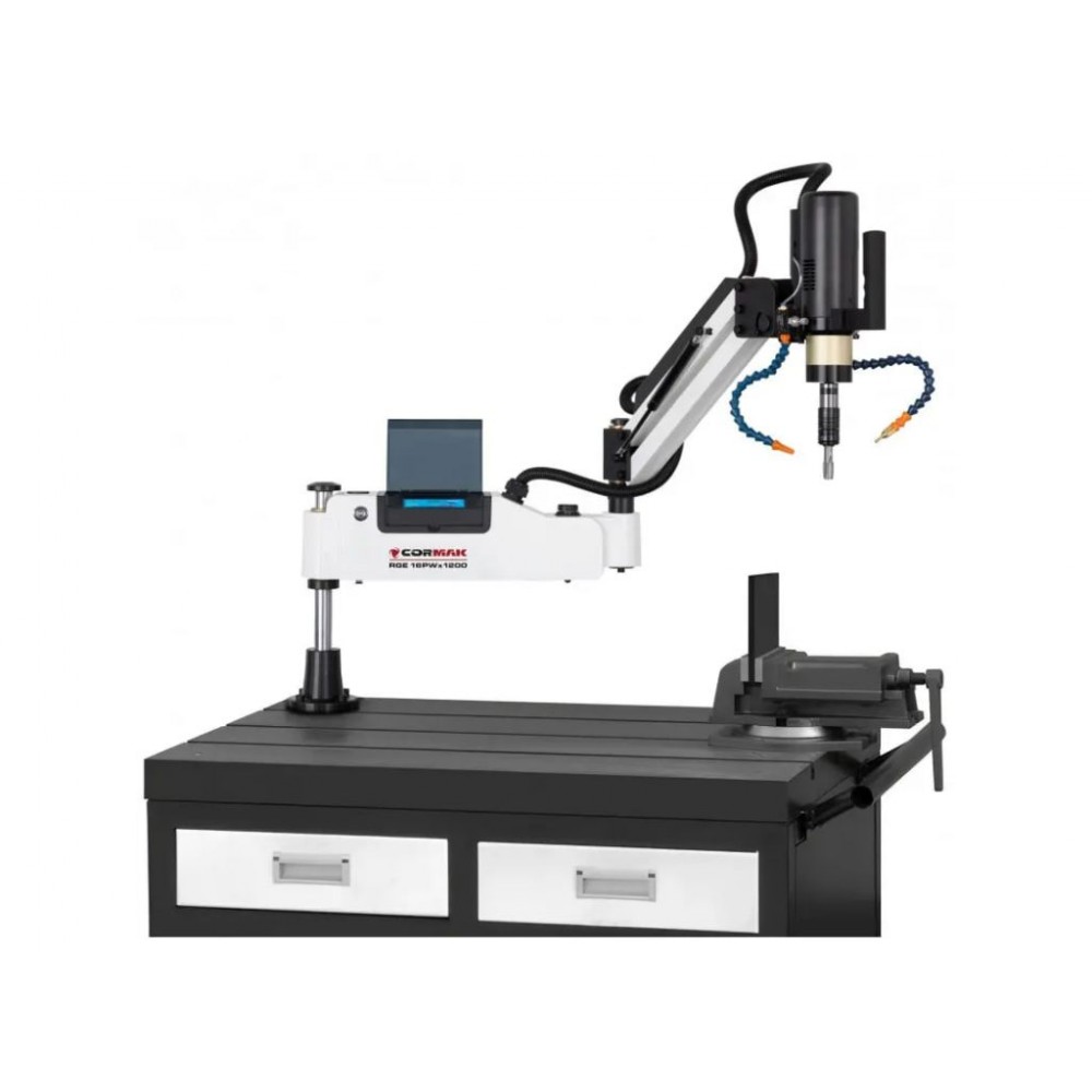 Різьбонарізний верстат CORMAK RGE16PW - це компактне, універсальне обладнання з ручним і автоматичним режимами роботи, що робить його ефективним як для невеликих майстерень, так і для великих виробництв. Сервопривід з високим крутним моментом і поворотний кронштейн з великим радіусом забезпечують швидке і точне нарізання різьби під кутом від 0° до 90°. Завдяки простій і зрозумілій сенсорній панелі керування можна легко запрограмувати швидкість, напрямок і глибину нарізання.