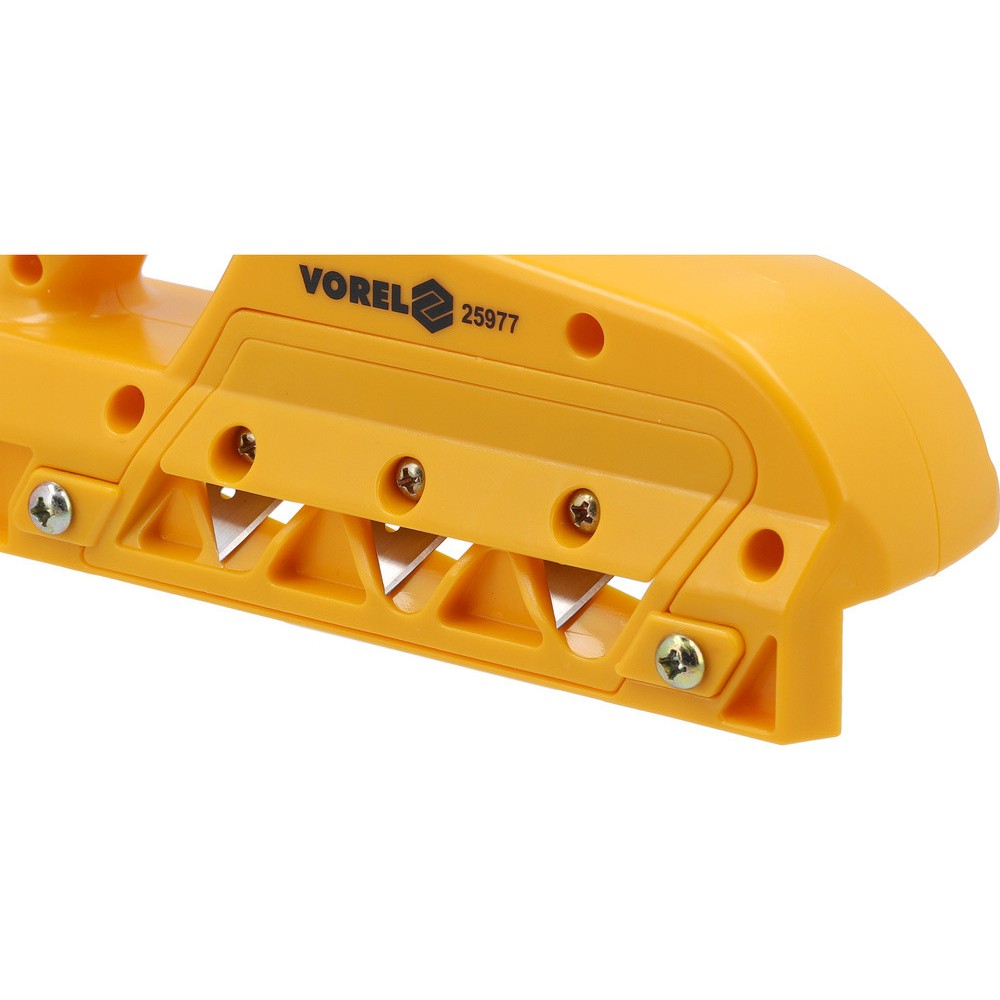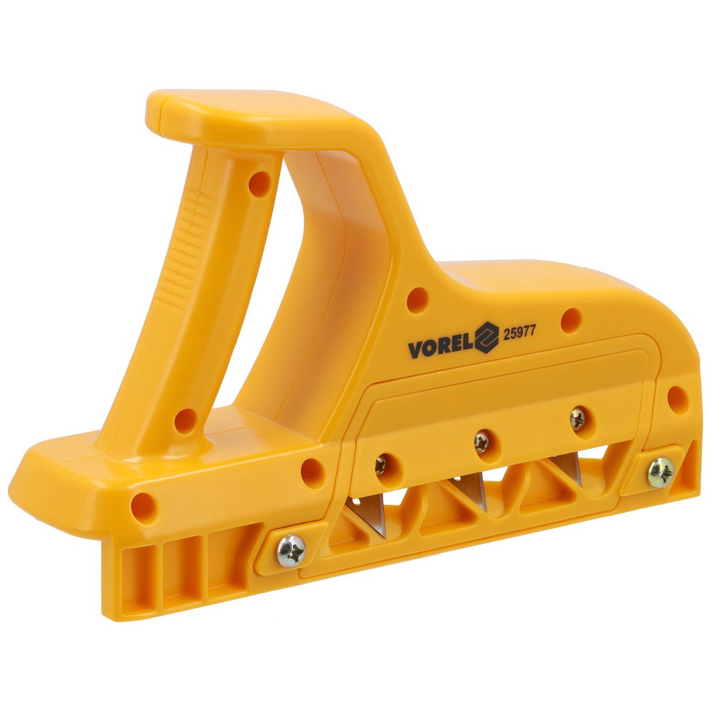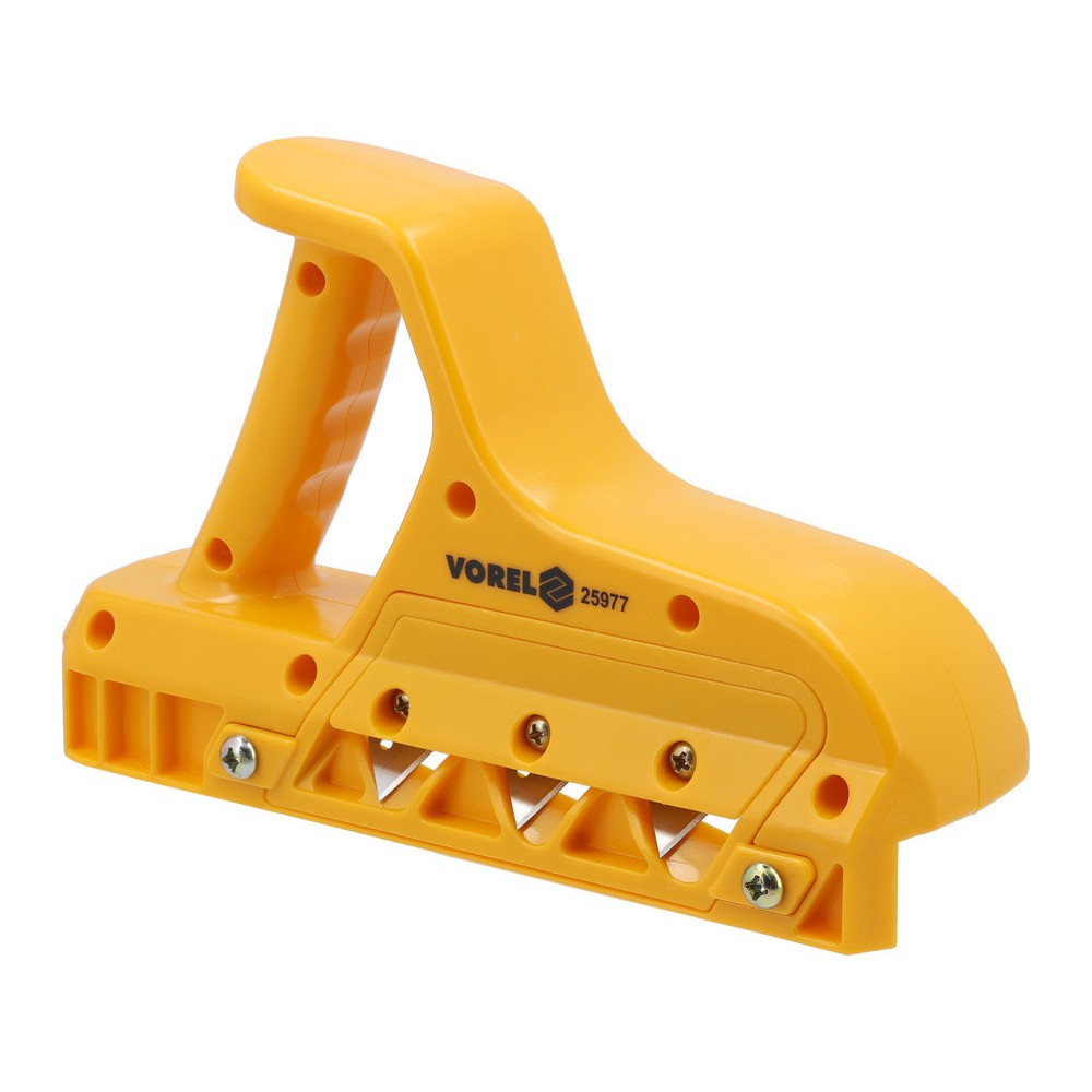Рубанок для зняття фасок по краях гіпсових плит. Оснащений 2 комплектами ножів з кутами 45° або 60°.