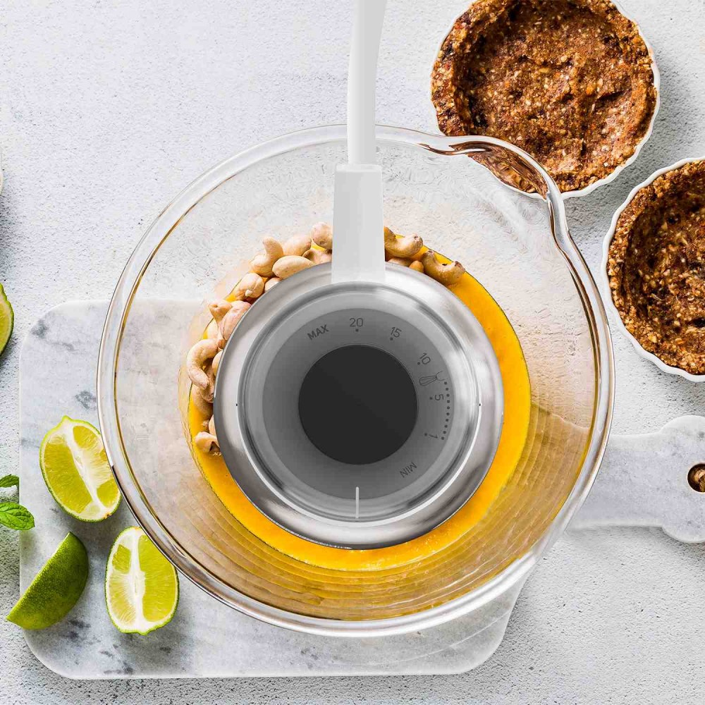 ✔ Модель оснащена 20 рівнями швидкості та режимом турбо, що дозволяє точно контролювати консистенцію продуктів і досягати найкращого результату під час приготування.