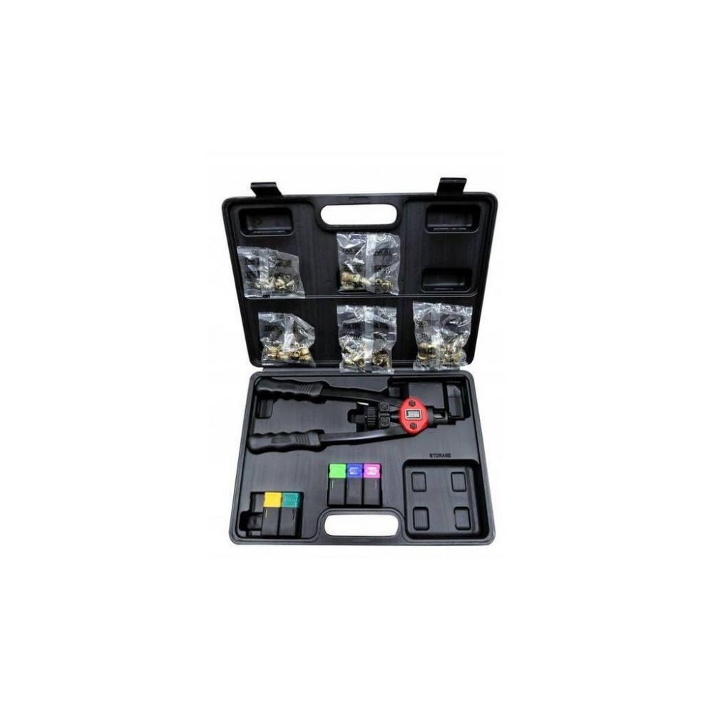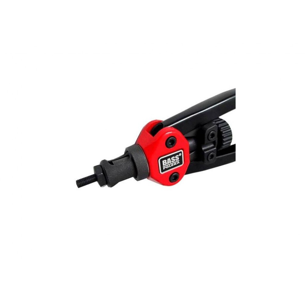 Ручний клепальний пістолет Bass Polska BP-2901 оснащений укороченою ручкою з подвійним шарніром для оптимізації ефективності позиціонування. Також набір заклепувальних гайок особливо корисний для роботи у важкодоступних місцях.