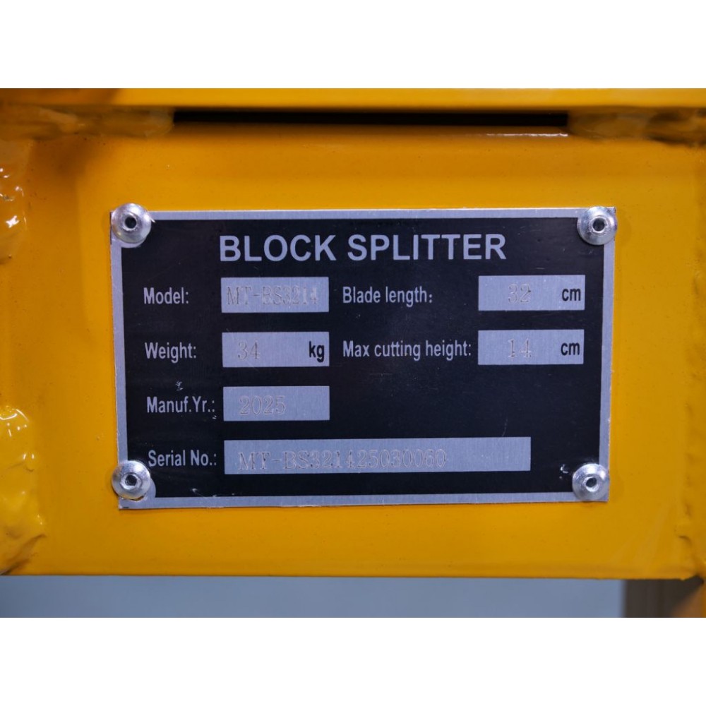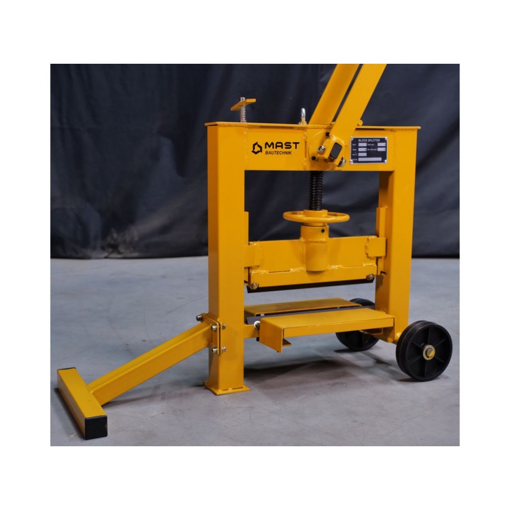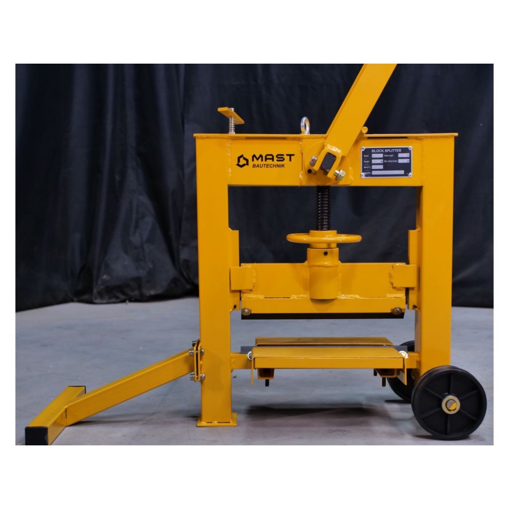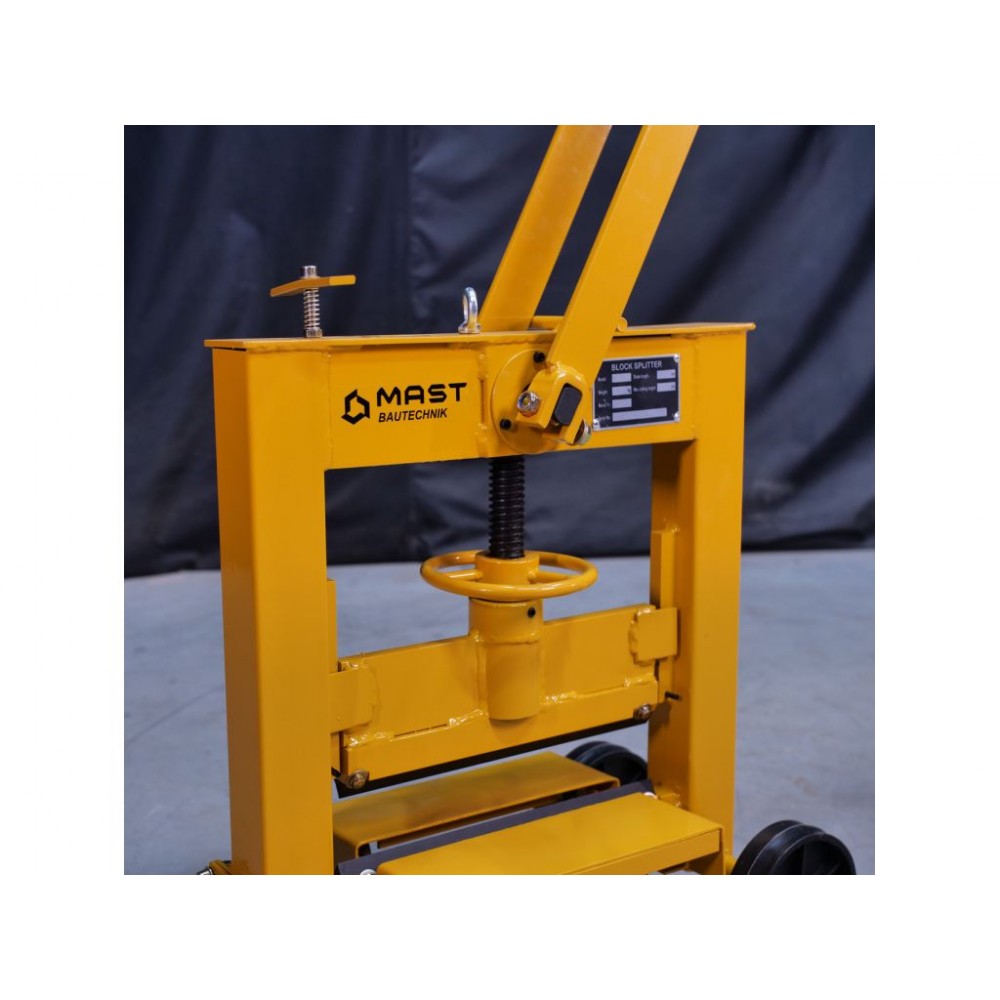 Ручний колун бруківки MAST Bautechnik MT-BS3214 - це компактне, просте в експлуатації обладнання для розколювання бруківки, тротуарної плитки, композитного каменю, панелей, бордюрів і подібних матеріалів. Розколювання здійснюється вручну, за допомогою довгого важеля з противагою, який створює значне зусилля і зменшує фізичне навантаження на оператора. Оснащений ножовою планкою із загартованої сталі. Максимальна ширина різу становить 330 мм, глибина різання регулюється у діапазоні 26-140 мм за допомогою центрального нарізного шпинделя.
