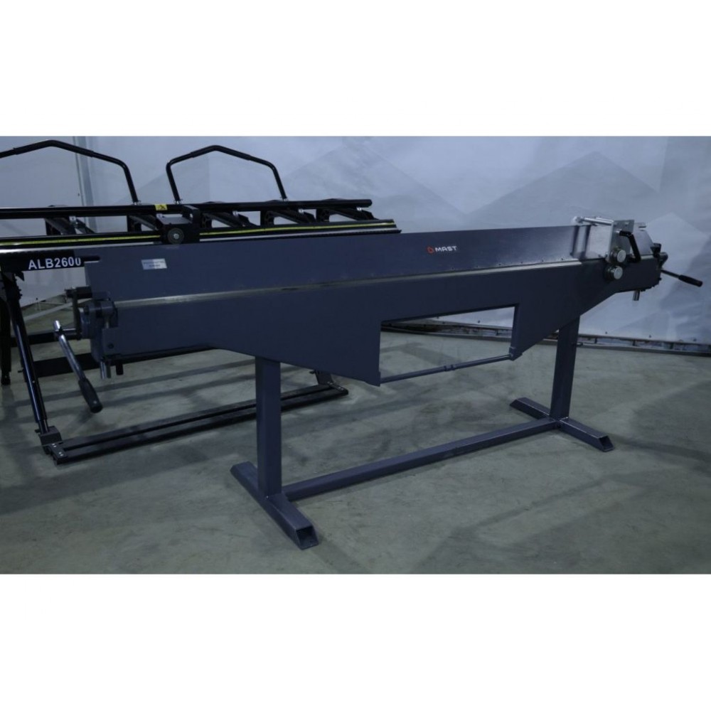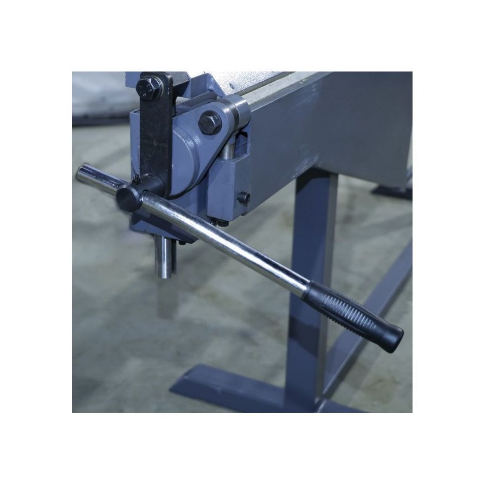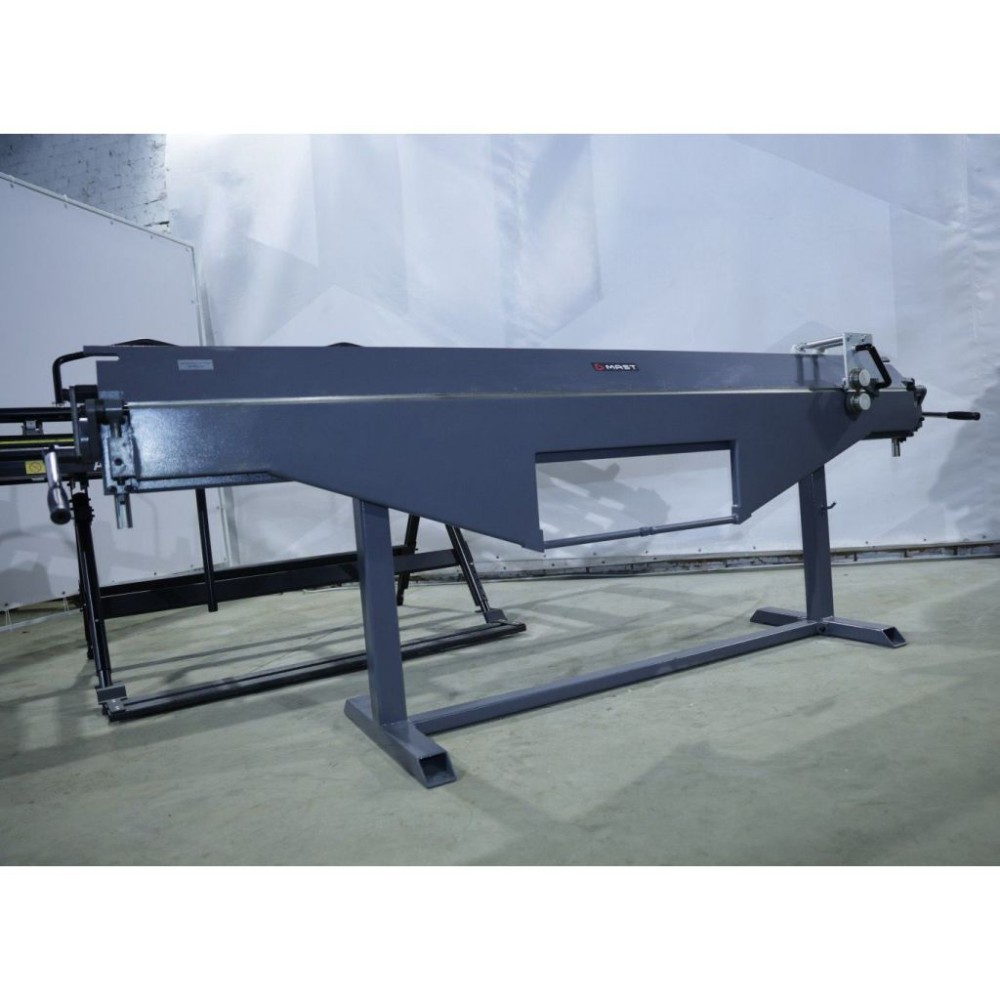 Ручний листозгинальний верстат з ріжучим ножем MAST BSM-2540 - це інструмент з ручним керуванням який має жорстку зварену конструкцію. Також присутні ексцентриковий механізм і напрямляючий вертикальний вузол переміщення притискної балки, суцільний сталевий куточок з гострою геометріює для отримання на заготовках малий R при згинанні, згинальна балка має вузол налаштування прямолінійності. Верстат ідеально підходить для роботи з чорною та оцинкованою сталлю. Верстат MAST BSM-2540 є універсальним для роботи з відливами, відкосами, додатковими елементами покрівлі, в тому числі і для роботи з великогабаритними виробами - такими як квадратна вентиляція (загальні габаритні розміри верхньої притискної балки становлять 170х170 мм). Можливість згинання від 0° до 135° – за один згин, згинання до 180° – з дотисканням у притискній балці.