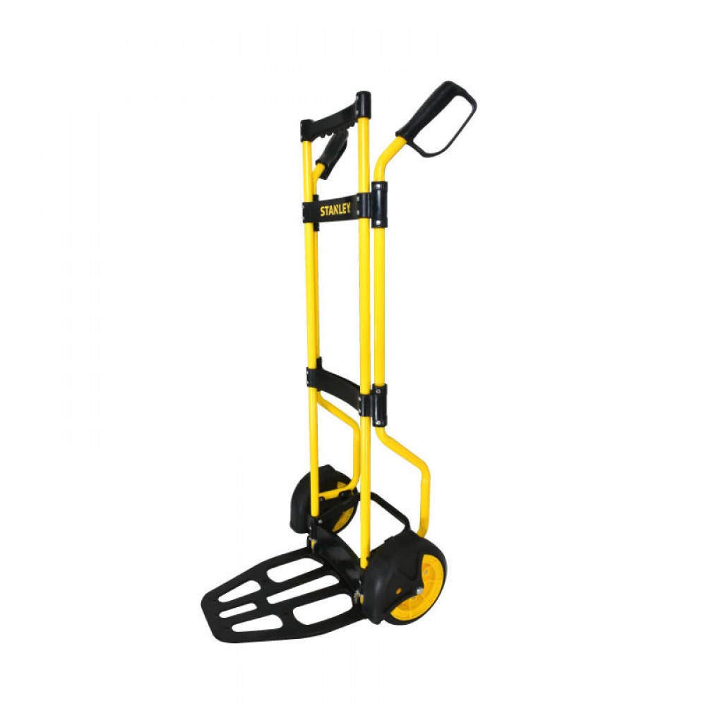 Візок складаний Stanley FT500 (8717496635006) – це просте та зручне рішення для транспортування габаритних, але не важких вантажів. Орієнтована конструкція на малий та середній бізнес. Користується попитом у службах доставки, магазинах та легкої промисловості. Застосовується для перевезення всередині складу побутової техніки, речей, продуктів харчування, ємностей із різними рідинами. Купити складаний візок Stanley FT500 за найкращою ціною Компактність та легкість конструкції відмінно поєднуються між собою у цьому мобільному рішенні. При невеликих габаритах візок може транспортувати дуже габаритні вантажі. Швидко складається та готується до роботи. У складеному стані нагадує невеликий кейс, при зберіганні не забирає багато вільного місця. Матеріал виготовлення візка – алюмінієвий сплав. Елементи кріплення – нейлон та поліпропілен. Колеса пластикові, гумові накладки. Рукоятка П-подібна, має висувний механізм із фіксатором – налаштовується під зростання користувача. Для фіксації вантажу в комплекті поставляється шнур (зберігається у спеціальному відсіку візка).