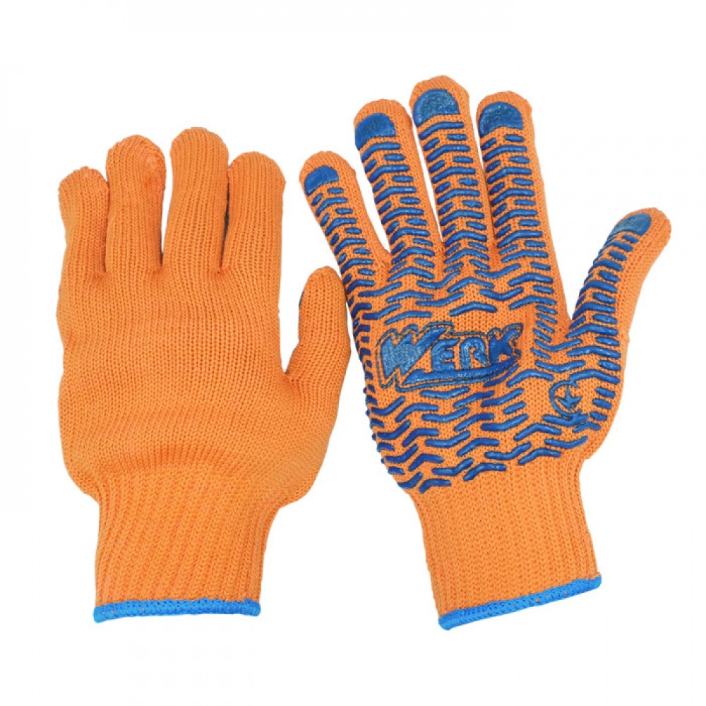 Рукавички Werk – це надійний захист рук під час садових, ремонтних, будівельних, вантажно-розвантажувальних та фасувальних робіт. Виготовлені з комбінації бавовни (ХБ) і полівінілхлориду (ПВХ) у помаранчево-синьому дизайні, вони забезпечують комфорт, зносостійкість і захист від пошкоджень. Ідеально підходять для різноманітних побутових і професійних завдань.Особливості:колір рукавичок: помаранчевий із синім ПВХ;матеріал виготовлення: бавовна (ХБ) і полівінілхлорид (ПВХ);призначення: захист рук від пошкоджень під час садових, ремонтних, будівельних, вантажно-розвантажувальних та фасувальних робіт.