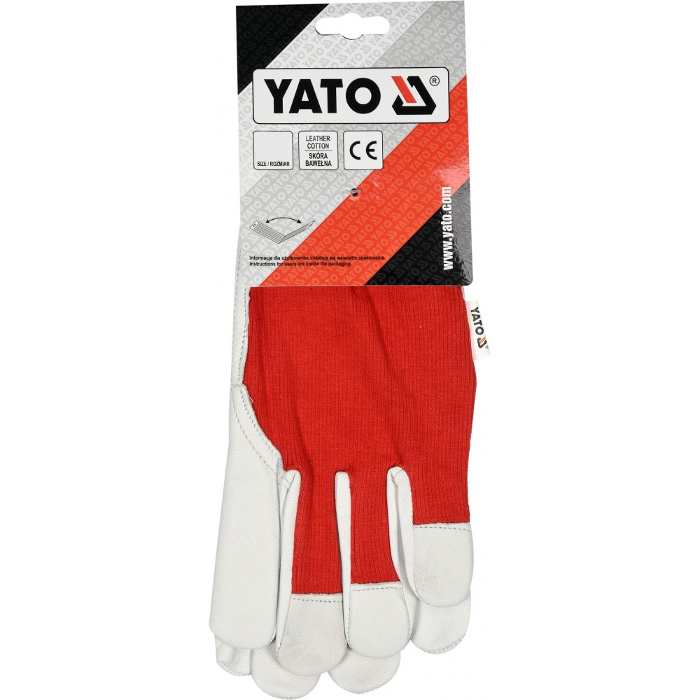 Рукавиці робочі біло-червоні YATO, бавовна + шкіра, розмір 8