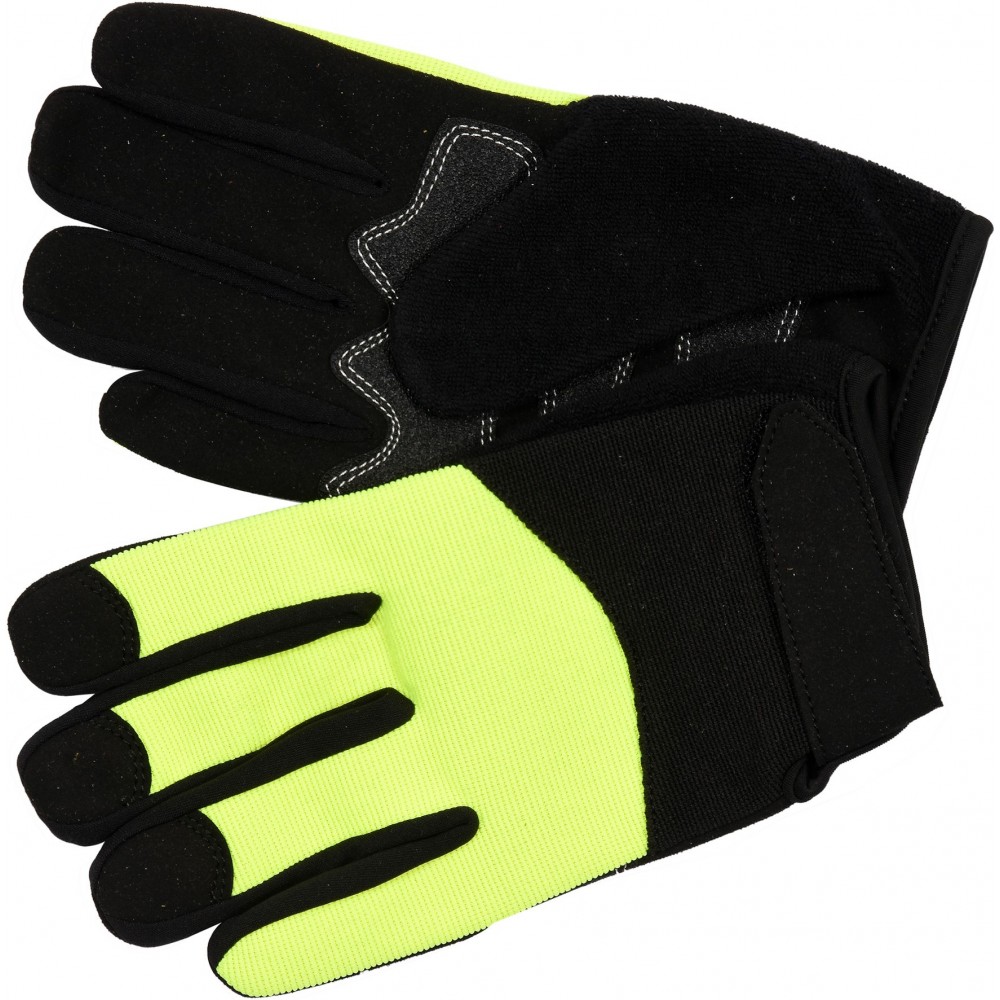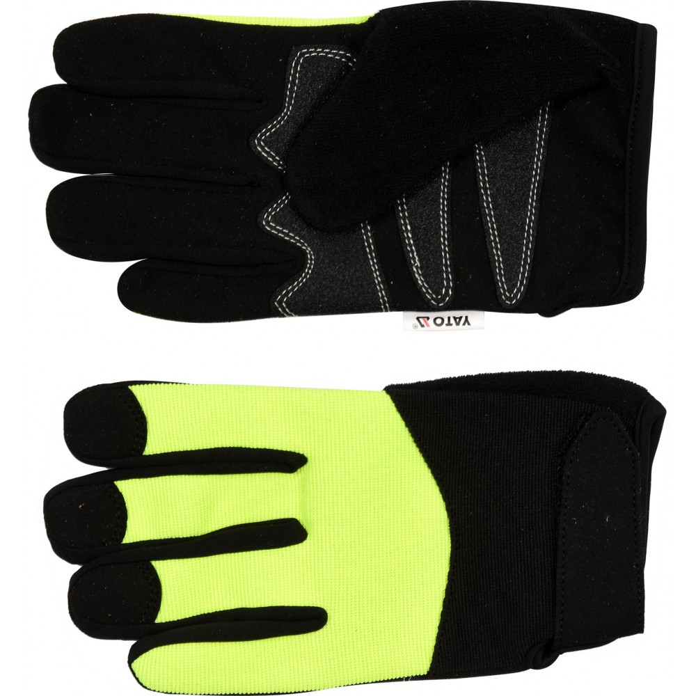 Рукавиці робочі чорно-жовті зміцнені YATO для сенсорних екранів, штучна шкіра бавовняний трикотаж, розмір 10