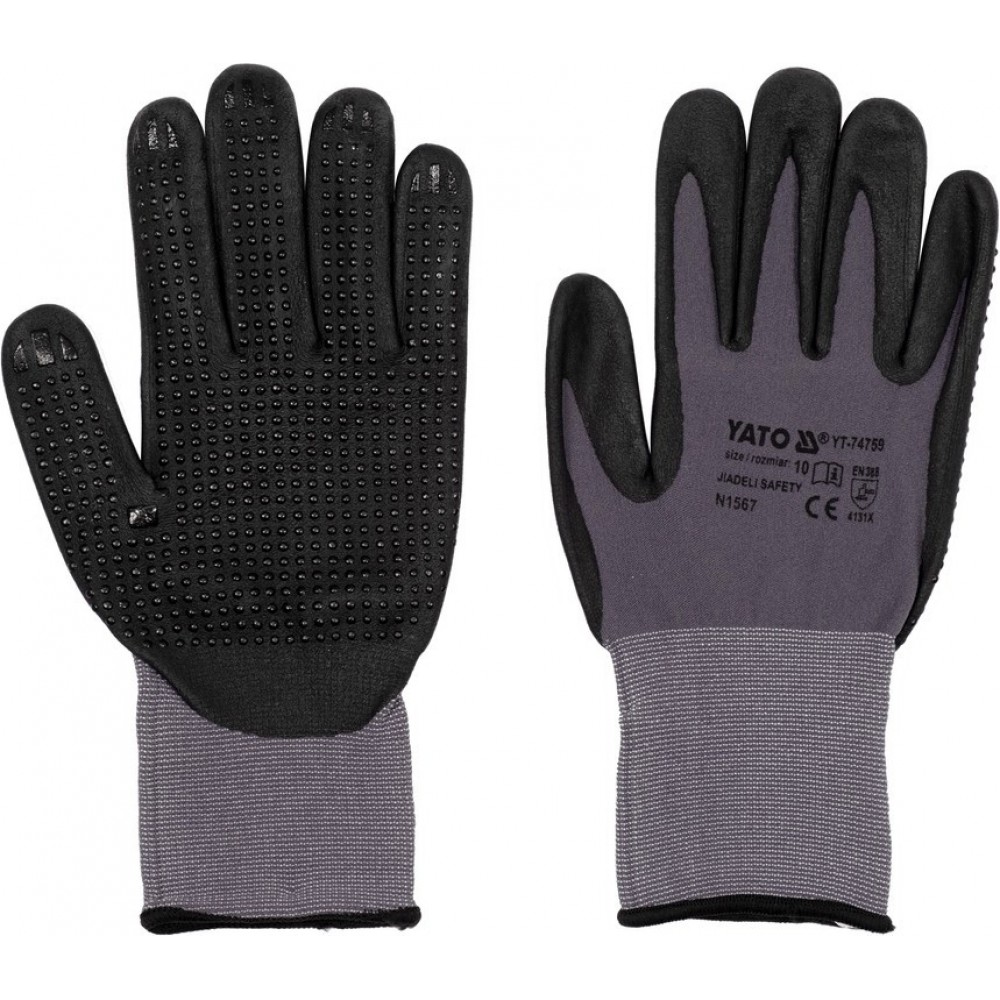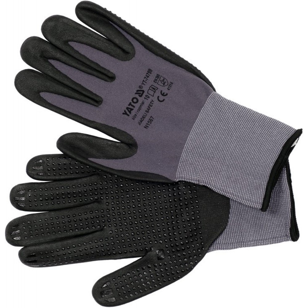 - матеріал: рукоятка: покрита спіненим нітрилом з додатковими нітриловими точками)