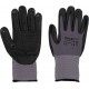 Рукавички захисні робочі з нейлону темно-сірого кольору з додаванням спандекса, покритого в захватній частині спіненим нітрилом чорного кольору з нітриловою точкою.