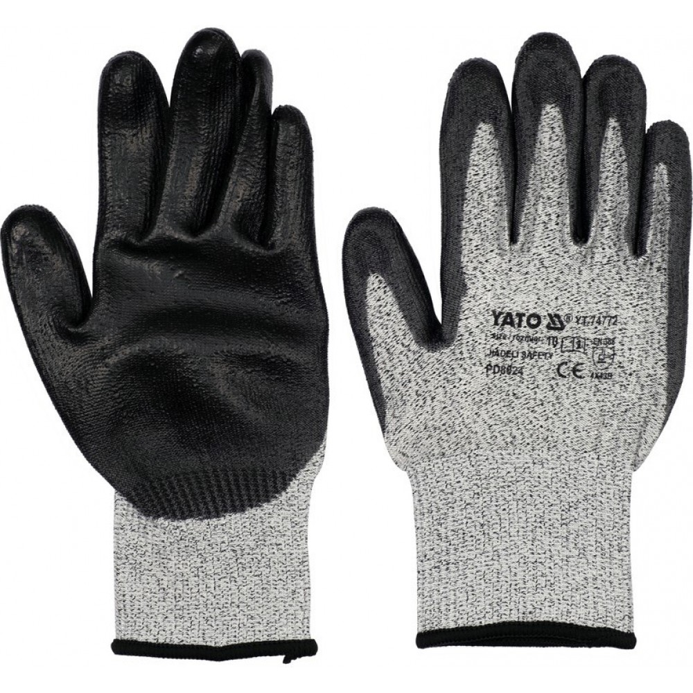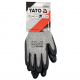 Рукавички захисні робочі з нейлону темно-сірого кольору з додаванням спандекса, покритого в захватній частині спіненим нітрилом чорного кольору з нітриловою точкою.