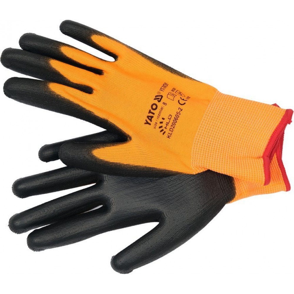 Рукавиці робочі з поліуретановою оболонкою YATO розмір 9, для користування смартфоном