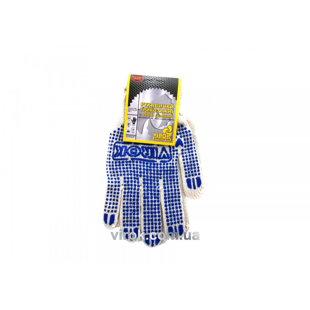 Рукавиці трикотажні білі з ПВХ крапкою (5 ниток; 70%- бавовна, 30%- поліестер) розмір 10