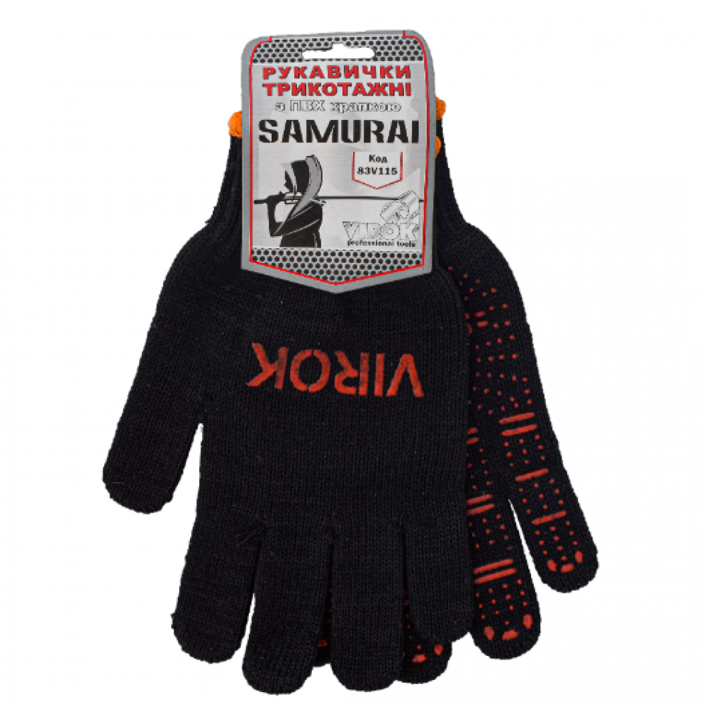 Рукавиці трикотажні SAMURAI з двостороннім ПВХ (10 клас, бавовна 40%, поліестр 60%) розмір 10