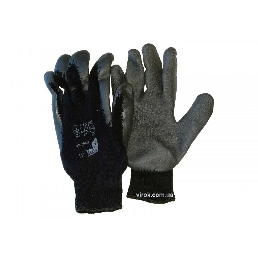 Рукавиці VIROK трикотажні бавовняні сірі 10 клас покритті рифленним латексом